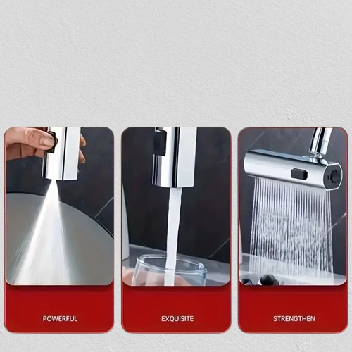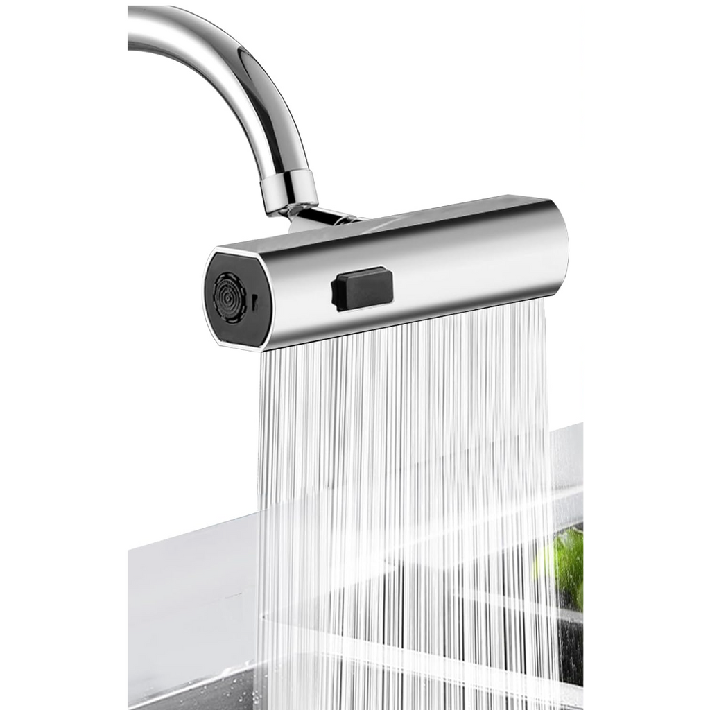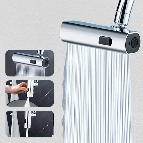 Descopera un accesoriu inovator si multifunctional pentru robinetul tau. Cu un design elegant si argintiu, acest extender este perfect pentru orice bucatarie sau baie.