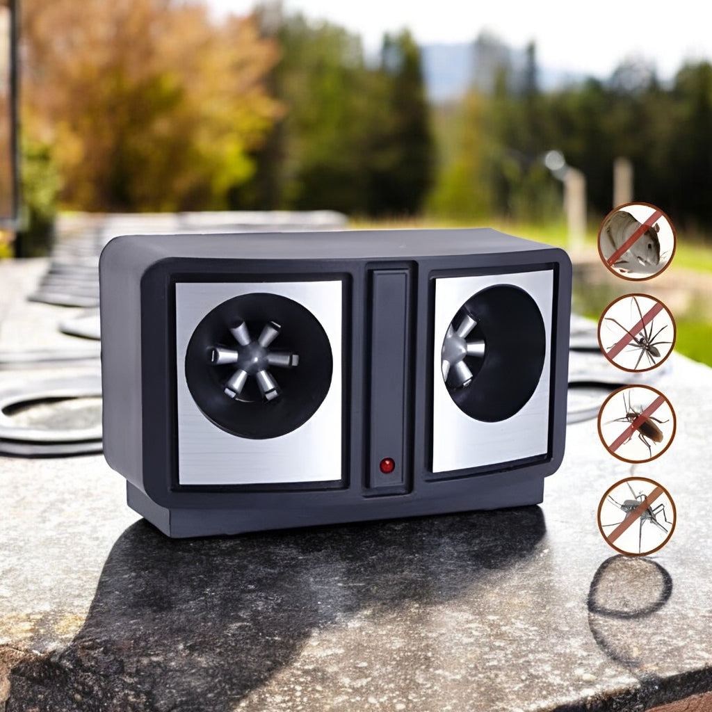 - Amplificarea ultrasunetelor: Cele două boxe ale aparatului generează ultrasunete puternice de până la 160 dB, deranjând dăunătorii și forțându-i să părăsească locuința.