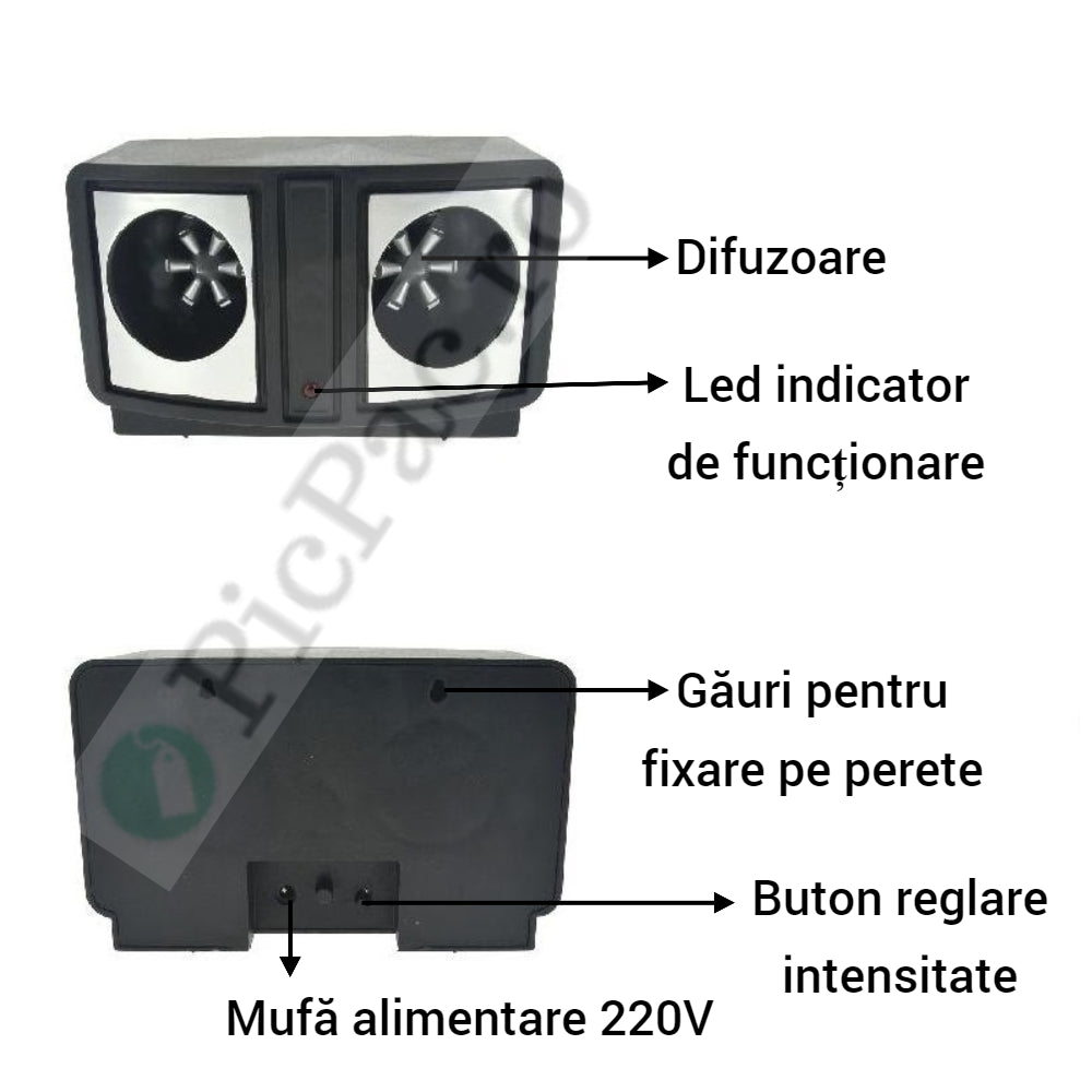 Acest dispozitiv se conectează simplu la o priză de 220V și transformă curentul electric în ultrasunete care îi deranjează pe dăunători, determinându-i să părăsească zona afectată. Inițial, aceștia vor deveni mai activi pe măsură ce sunt expuși ultrasunetelor, dar ulterior vor dispărea definitiv din spațiu.