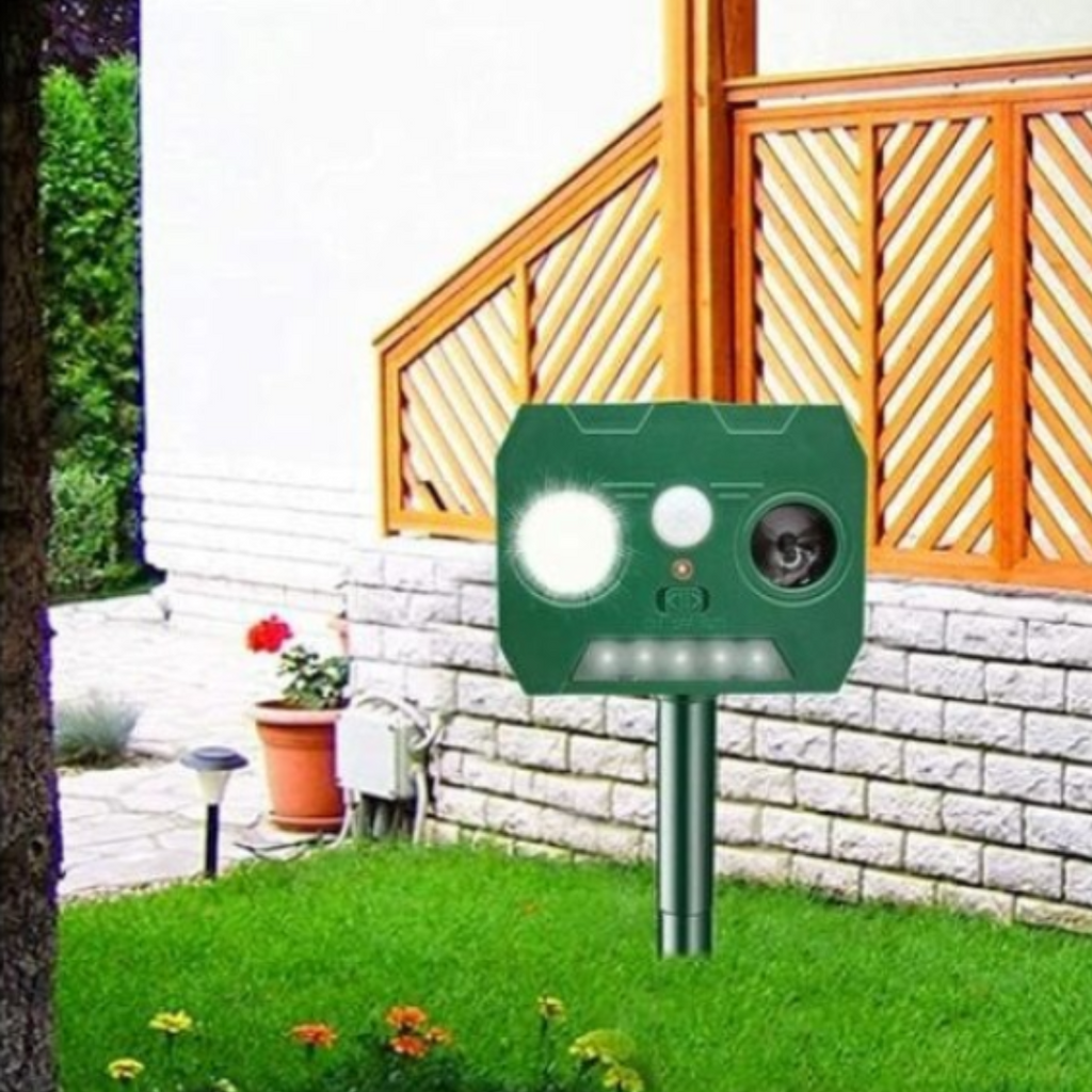 Dispozitivul respingator pentru pisici alunga daunatorii cu unde ultrasunete puternice si lumini LED intermitente puternice. Dupa instalarea acestui dispozitiv, undele ultrasonice vor respinge cainii fara stapan, pisicile fara stapan, soarecii, pasarile, vulpile etc. departe de casa, gradina si alte zone.