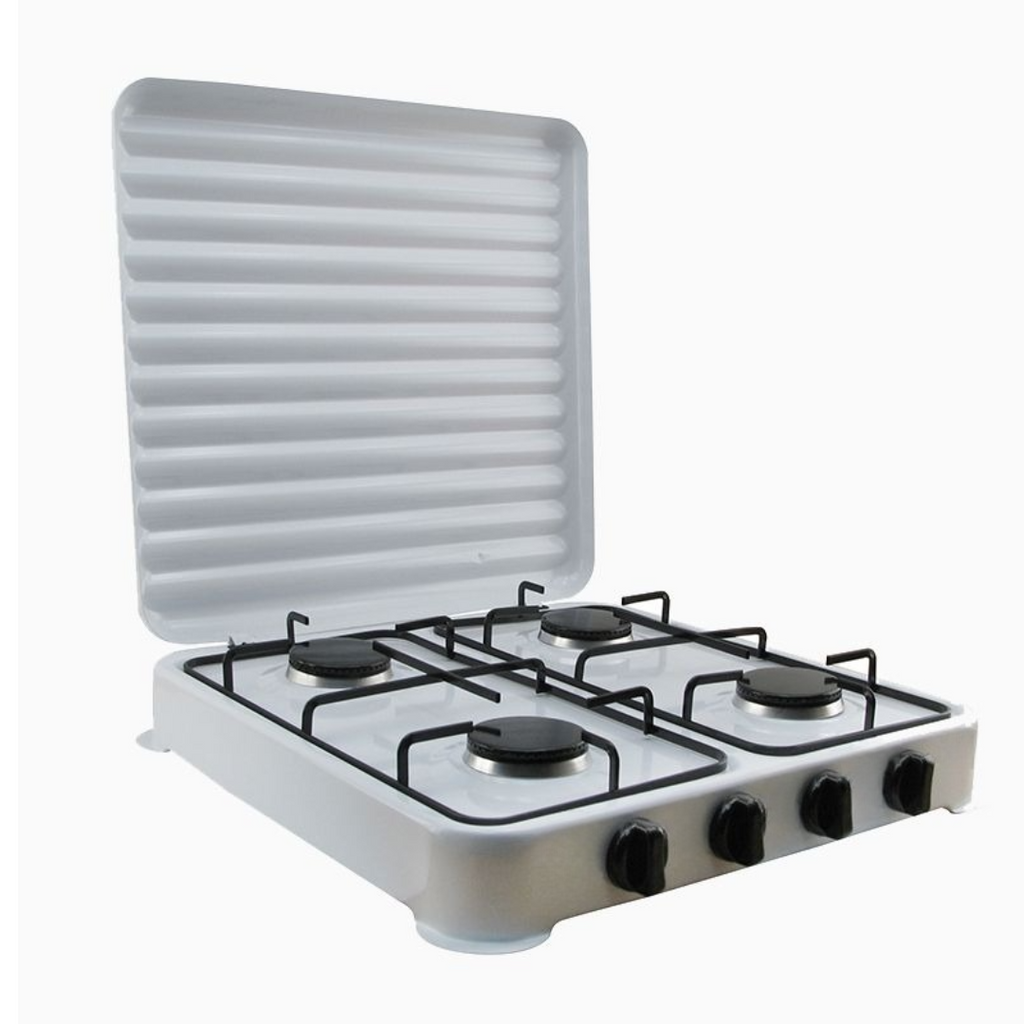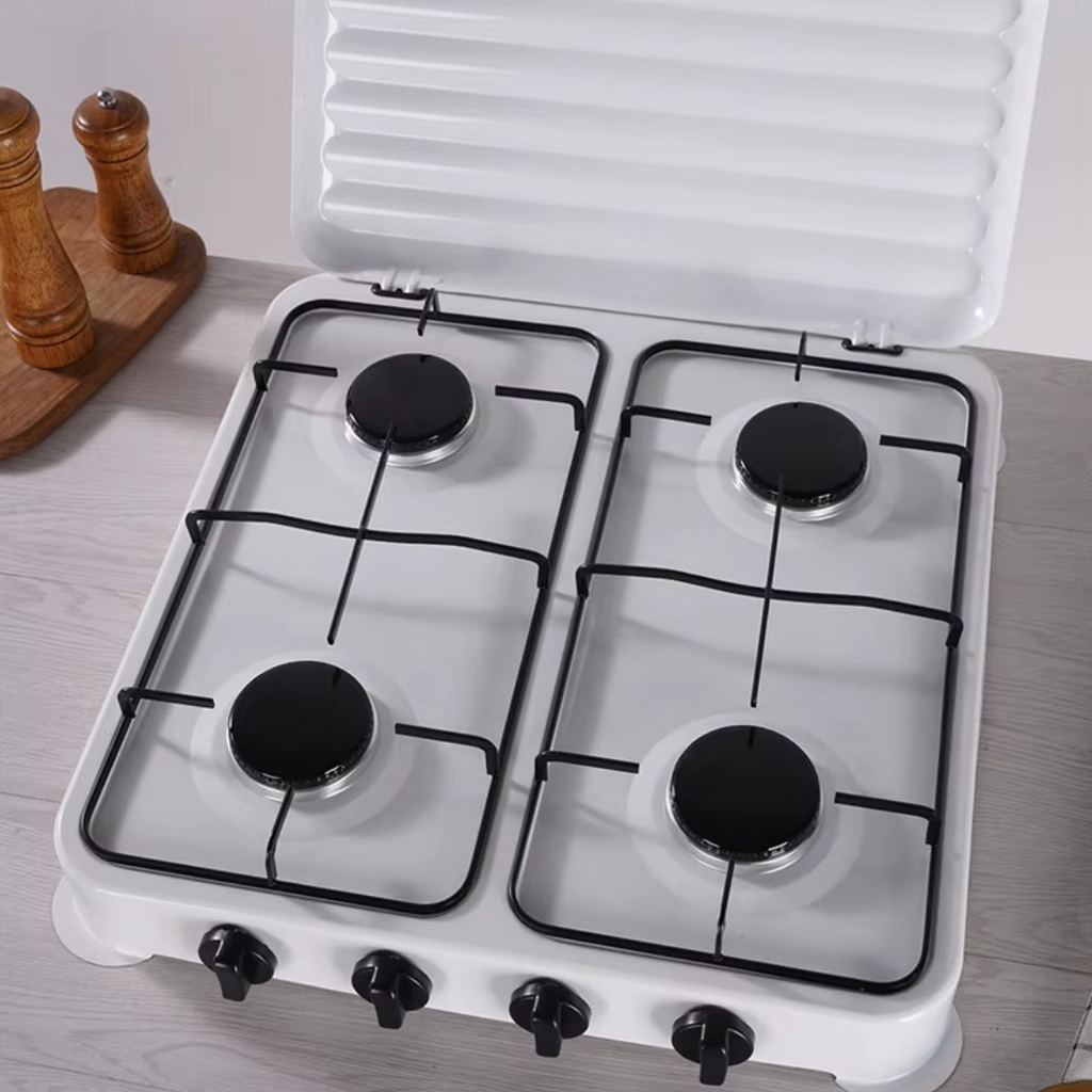 Aragaz pe Gaz 4 Arzătoare, Design Compact, Carcasă Metalică, Capacul Inclus