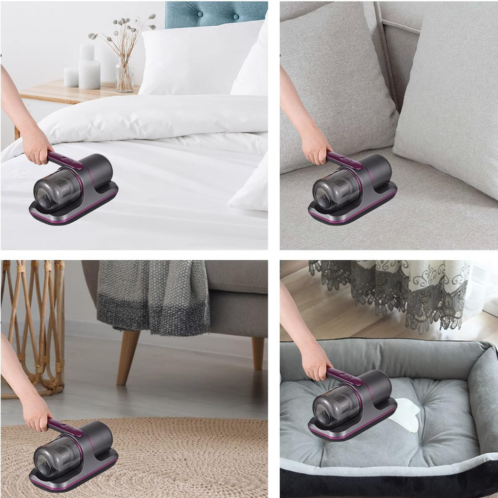 Aspiratorul de pat poate fi curatat cu un singur clic. Aspiratorul UV poate fi folosit pe paturi pentru a curata in profunzime perne si saltele; poate fi folosit si pe canapele si paturi pentru a indeparta parul si resturile de animale de companie; poate fi folosit si pe hainele papusilor pentru a indeparta acarienii si bacteriile si pentru a ingriji pielea sensibila,