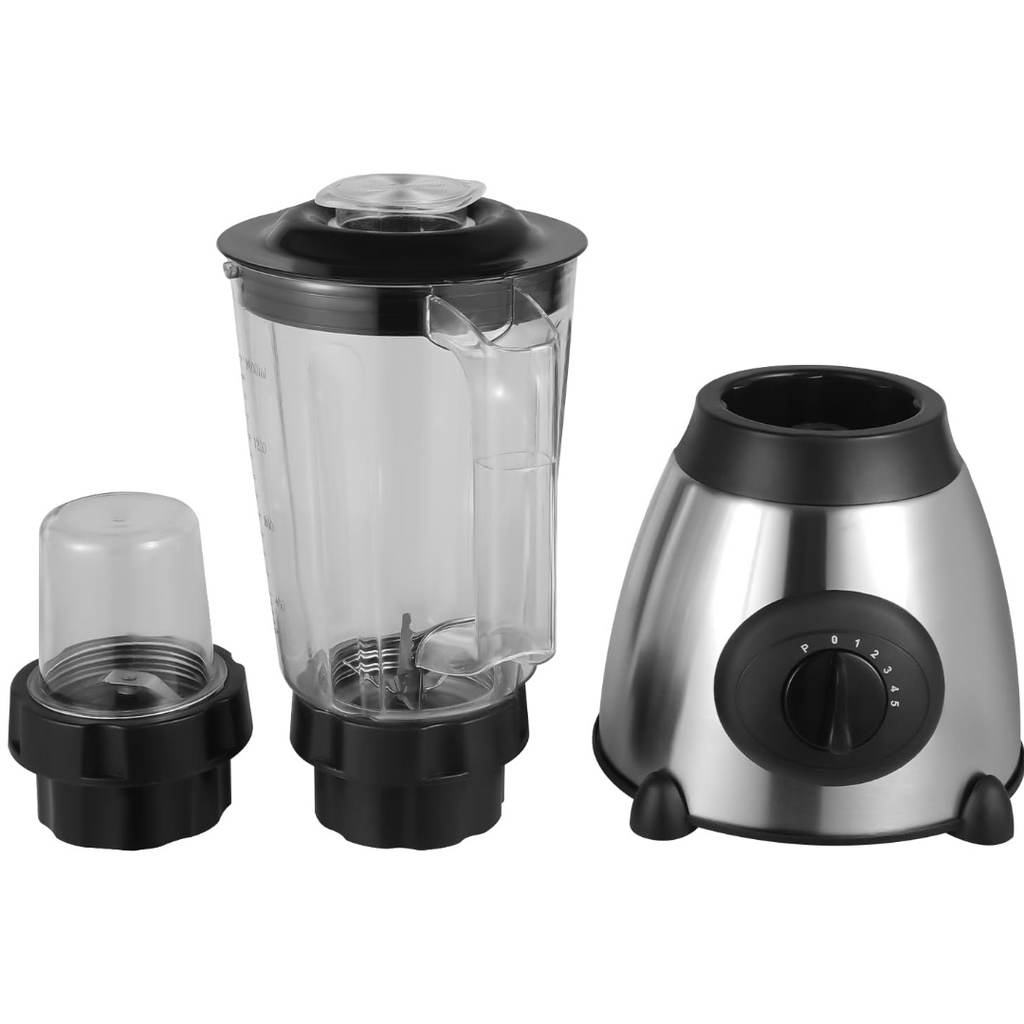 Blender 2 in 1 capacitate 1.5L, 650W si 5 viteze. Include rasnita pentru cafea si condimente. Ideal pentru smoothie, sucuri si maruntire rapida.