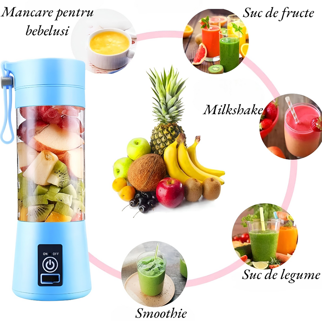 Iti plac sucurile proaspete de fructe proaspete si ti-ar placea sa le poti face oricand si in orice conditii. Si in drumetii si in camping, sau la picnicuri. Cu blenderul portabil iti poti savura instant bautura sanatoasa pe care ti-o doresti, chiar si pe o patura in parc. Nu trebuie decat sa nu uiti acasa fructele si legumele preferate. Fiind portabil, este si usor transportat.