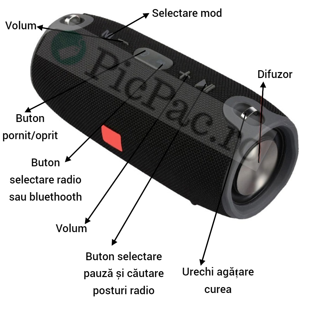 Dimensiuni: Lungime: 21 cm Diametru: 10 cm Tip produs: Activa cu acumulator Tip boxa: Activa cu bluetooth Conectori: AUX prin Jack 3,5 mm card micro sd, 1 x Mini USB USB Medii de redare: microSD, Bluetooth, AUX, Bluetooth, Aux, TF Card, USB, Microfon incorporat FM Radio MP3, AAC, WAV Stick usb, card micro SD Bluetooth / microSD / USB stick / orice device AUX care se poate conecta prin jack 3.5mm Raza de actiune: 10 metri Format audio suportat: MP3, WMA, Real Audio Mp3/wma de pe USB/TF card AM/FM: AM/FM Accesorii incluse: Cablu USB pentru reincarcare Cablu AUX - AUDIO Culoare: In functie de stoc Impedanta: 4 Ohm Cai: 3 Greutate (Kg): 700 g Alimentare: 1 x Cablu încarcare mini USB 100 - 240 V AC, 50/60 Hz Timp redare: 10 ore Autonomie: 10 h Putere 2x10w Baterie: 2200mAh Compatibilitate: baterie reincarcabila, Toate dispozitivele Bluetooth Universal Android, Apple, Compatibil MP3, MP4, PC, DVD, TV, Laptop, PC Tablet, Mobile NU ESTE O BOXA JBL! Compatibilitate universala cu tablete si telefoane Android si Iphone, MP3-uri, MP4-uri si alte dispozitive Bluetooth cu player audio Jack audio 3.5mm, tablete, notebook-uri PC-uri universal bluetooth PC.