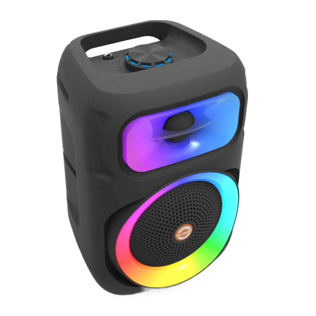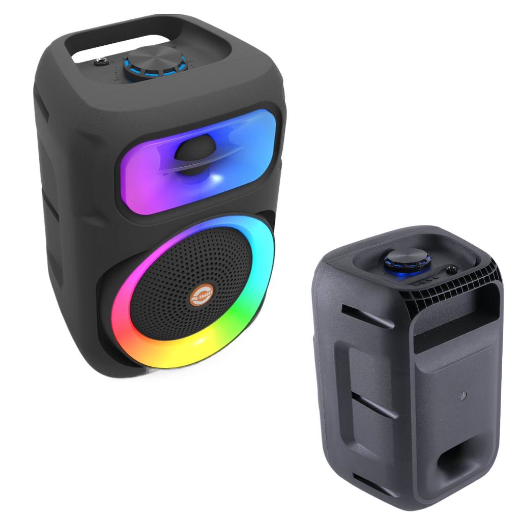 Descoperă Boxa Portabilă MS-2043BT, alegerea ideală pentru petreceri, karaoke sau momentele tale de relaxare. Echipată cu un woofer de 8 inch și lumini RGB vibrante, această boxă combină performanța audio de calitate superioară cu un design modern și atrăgător.