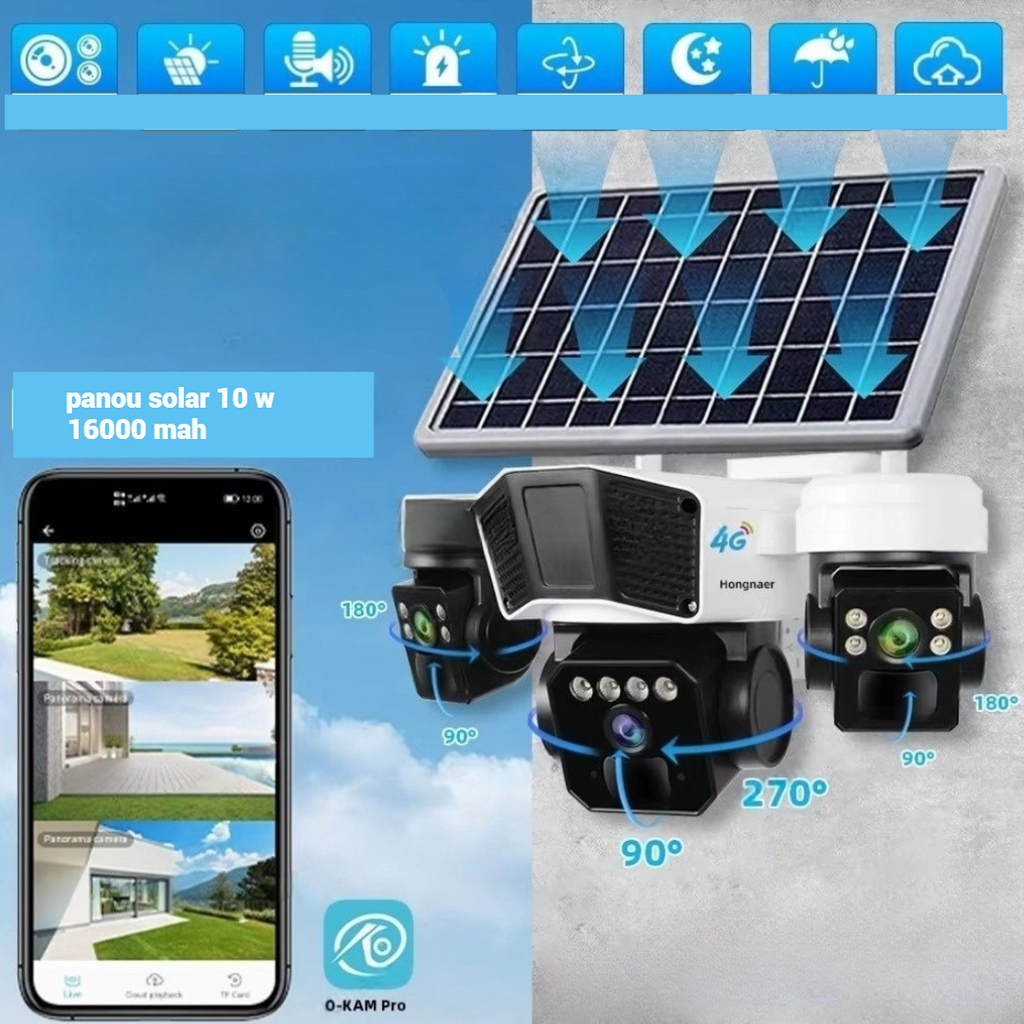 Asigură-ți locuința, afacerea sau proprietatea cu Cameră de Supraveghere Solară 4G TL3, echipată cu baterie de 16000mAh, 3 senzori PIR pentru detectarea mișcării și conectivitate 4G pentru monitorizare de la distanță. Datorită panoului solar eficient, această cameră funcționează autonom, fără necesitatea unei alimentări permanente la rețea.