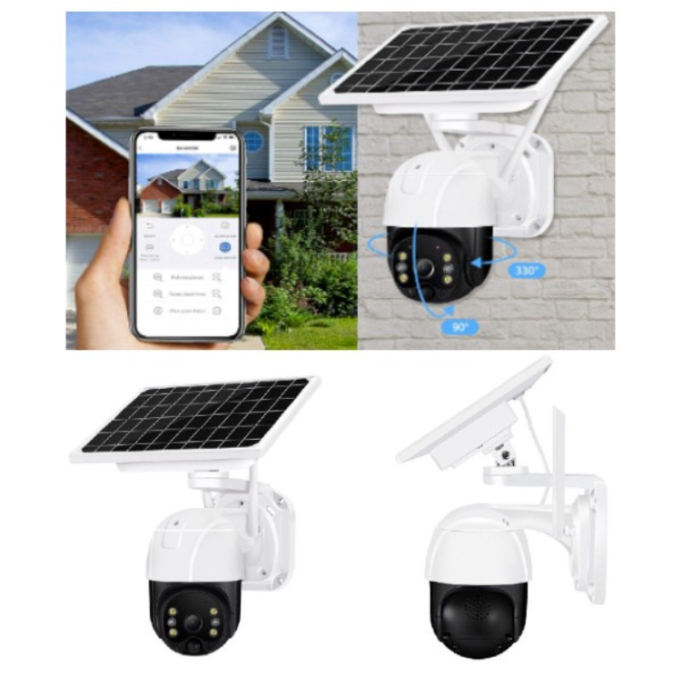 Camera este prevazuta cu un panou solar care alimenteaza 6 acumulatori 18650 de cate 3000ma fiecare, insumand un total de 18000ma, ceea ce-i permite acestei camere sa fie independenta de orice sursa de energie electrica, fiind cea mai buna varianta de a instala aceasta camera in cele mai izolate locatii, cum ar fi : ferme, santiere in constructie, vanatoare, etc. Panoul Solar contine acumulatorii,sunt inclusi.