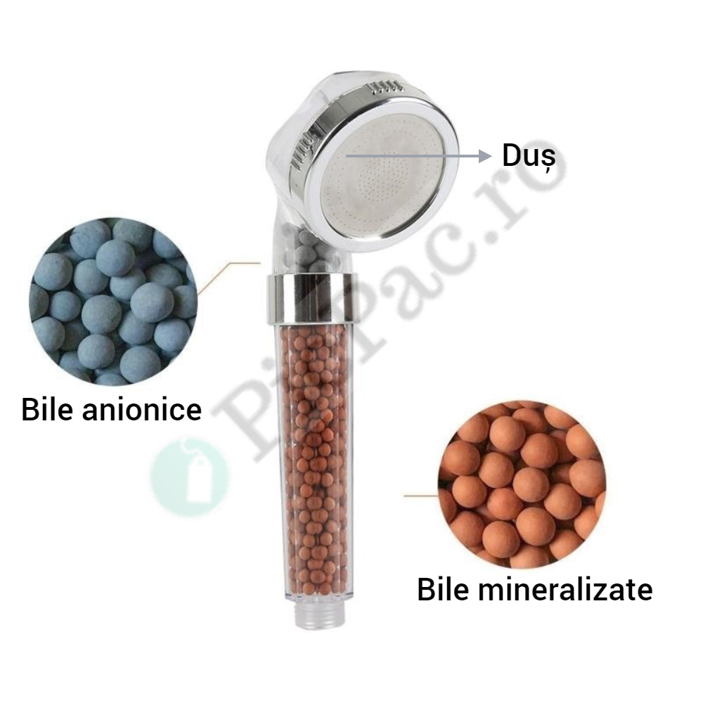 - Capul de dus filtreaza calcarul din apa, ajuntand la mentinerea unei bai curate, fara pete de calcar. - De asemenea, apa fara calcar este sanatoasa atat pentru piele, cat si pentru parul dumneavoastra. - Pielea si parul vor straluci de sanatate, dupa fiecare dus! - Capul de dus cu granule anti-calcar este ideal in orice baie, pentru mentinerea in conditii perfecte a cabinei de dus. - Poate fi montat la orice furtun obisnuit de dus fiind foarte usor de montat si reprezinta o utilitate extrem de practica, deoarece calcarul lasa urme pe faianta sau gresia stropita cu apa, asa ca acum puteti evita acest lucru. - Cu un design clasic, se monteaza cu usurinta si este usor de manevrat.