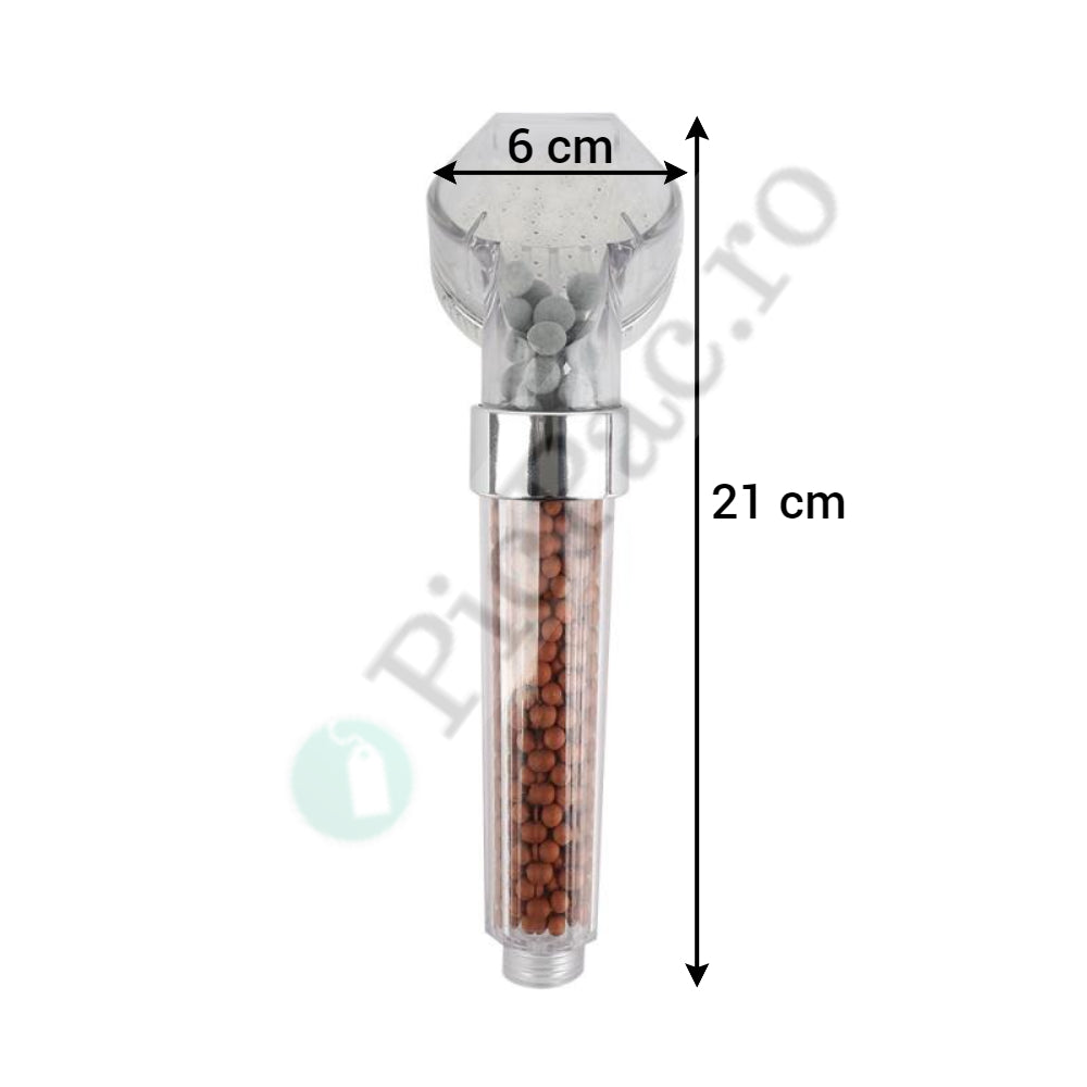Dimensiuni: Lungime: 21cm Latime: 6 cm Continut colet: 1 Cap de dus cu granule anti calcar