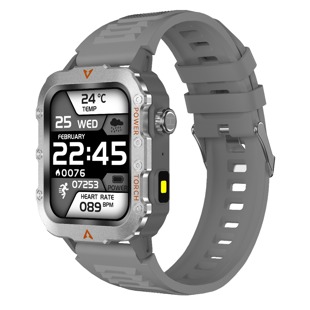 Material exterior: Corp principal: aliaj de zinc + sticlă temperată; brățară din silicon