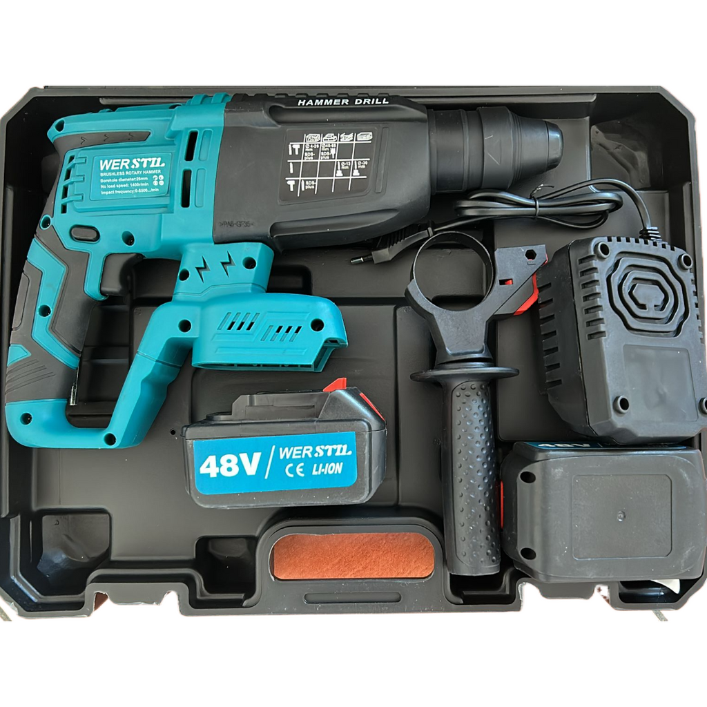 Ciocanul rotopercutor SDS Plus Werstil este un instrument esențial pentru profesioniști și pasionați de bricolaj, oferind putere, precizie și mobilitate maximă. Datorită celor 2 acumulatori de 48V, ai libertatea de a lucra fără restricții, indiferent de locație. Conceput pentru găurire, dăltuire și percuție, acest model asigură performanțe excelente în beton, cărămidă, piatră sau lemn.
