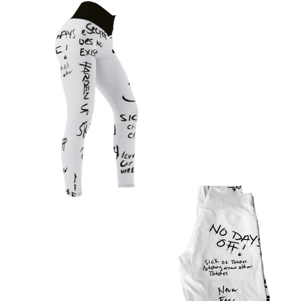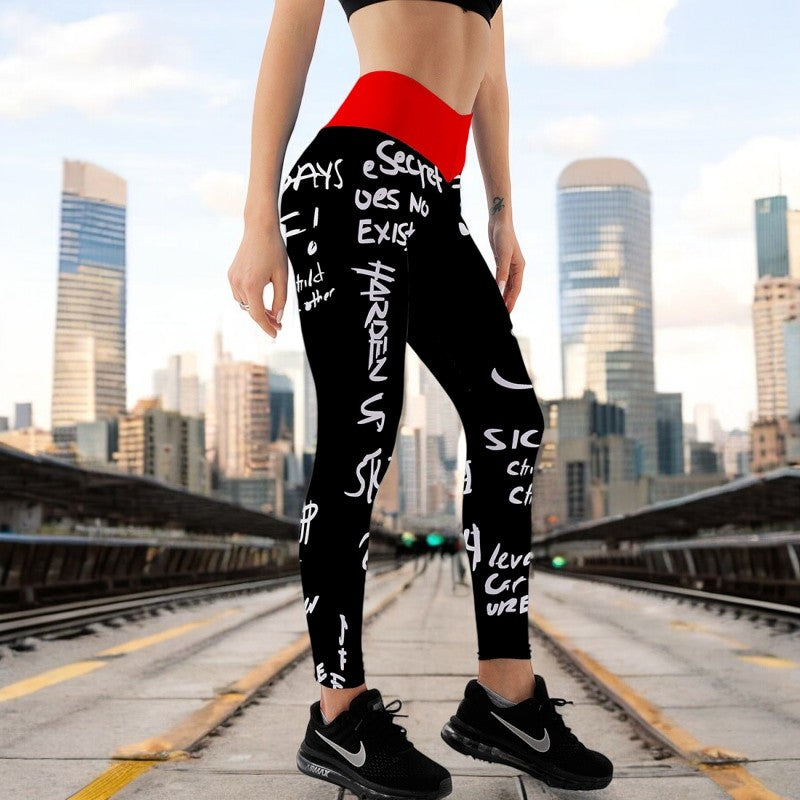 Transformă-ți ținuta zilnică cu acești colanți decorați cu un imprimeu artistic deosebit. Designul lor unic cu scrisuri oferă un look modern, urban și nonconformist, perfect pentru cei care vor să iasă în evidență. Confortabili și versatili, acești colanți pot fi asortați atât cu tricouri casual, cât și cu bluze mai elegante, fiind ideali pentru activități zilnice sau sesiuni de fitness.