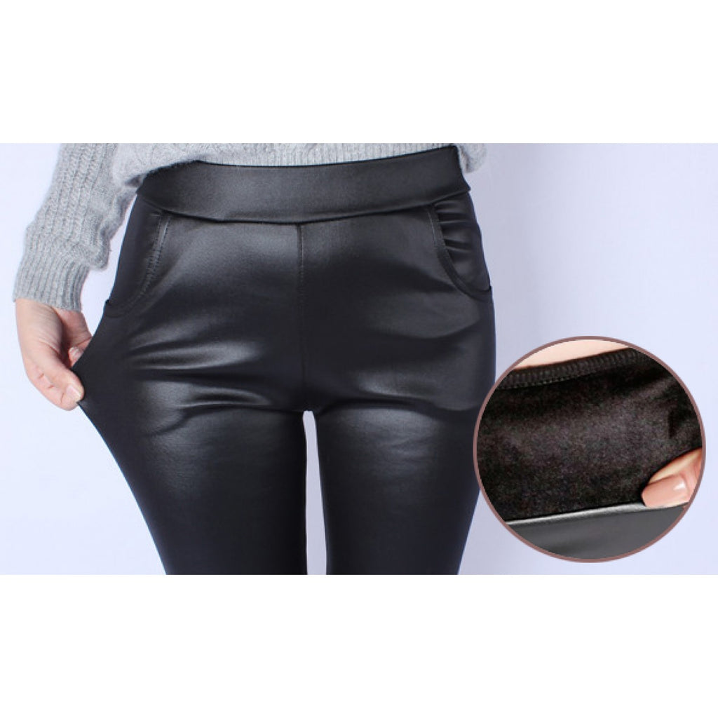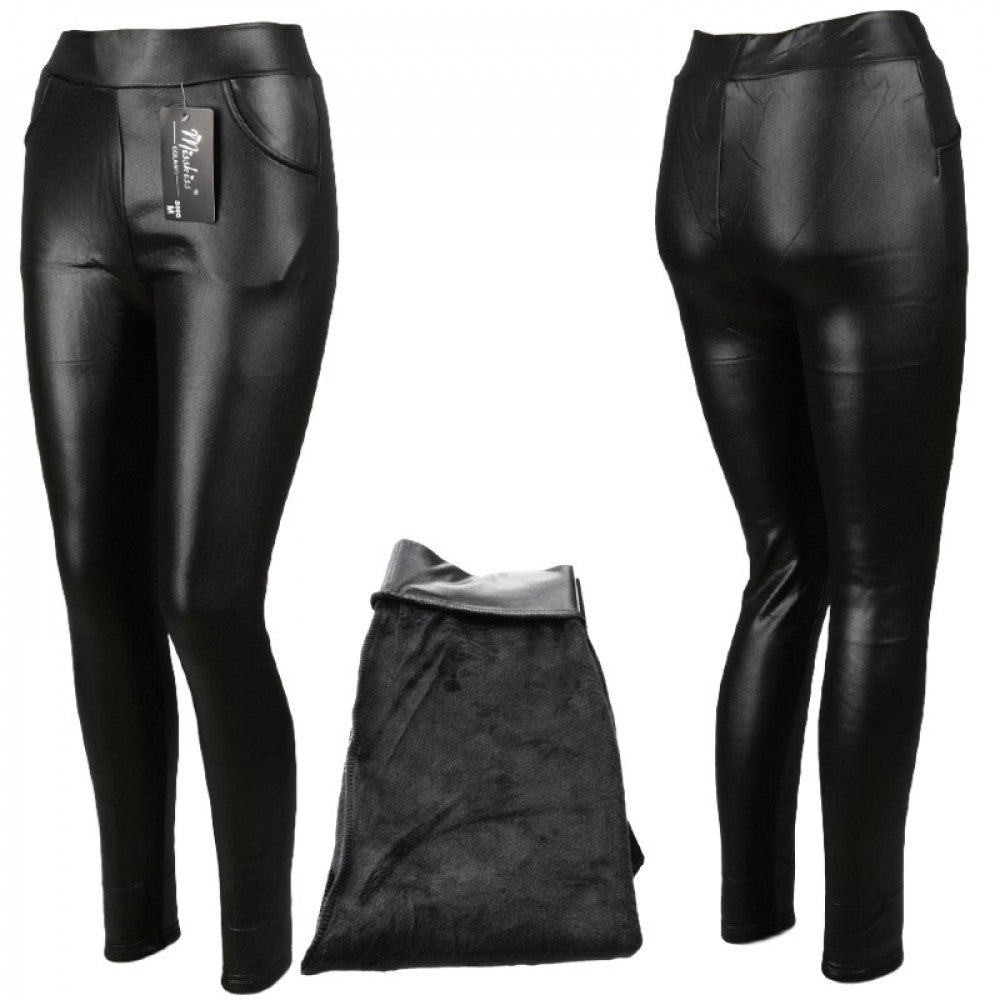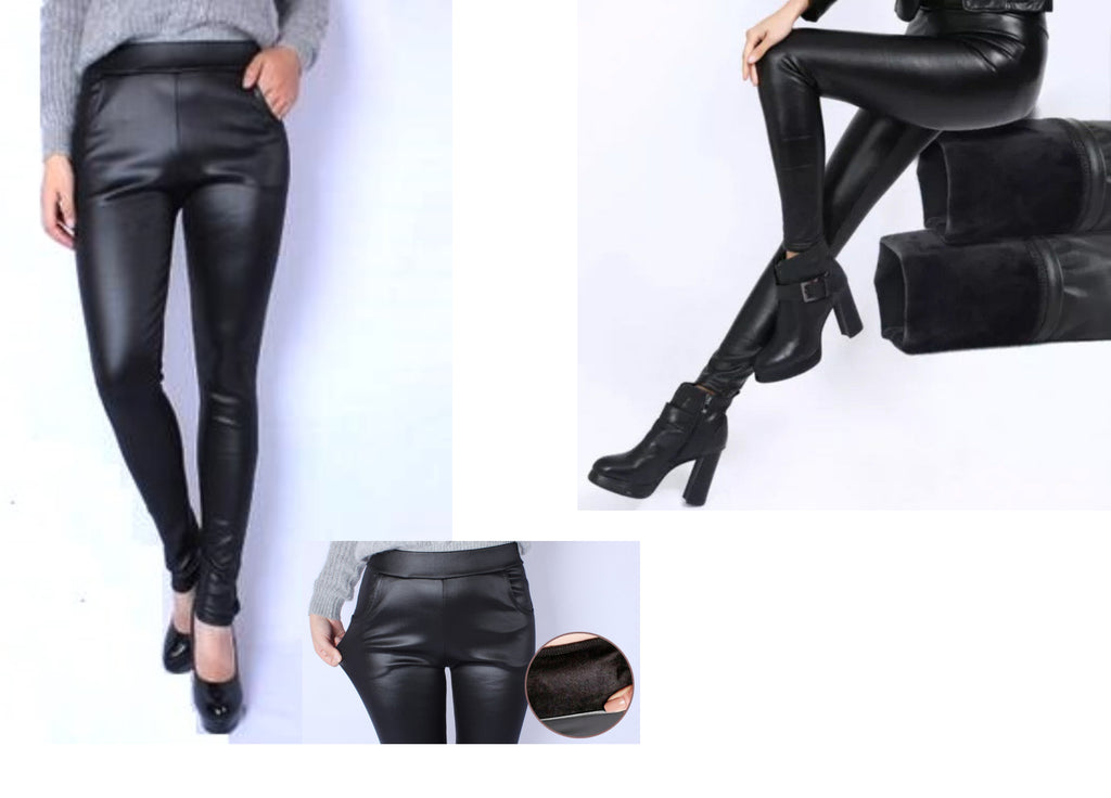 Colanti vatuiti, imitatie vizuala de piele, cu buzunare