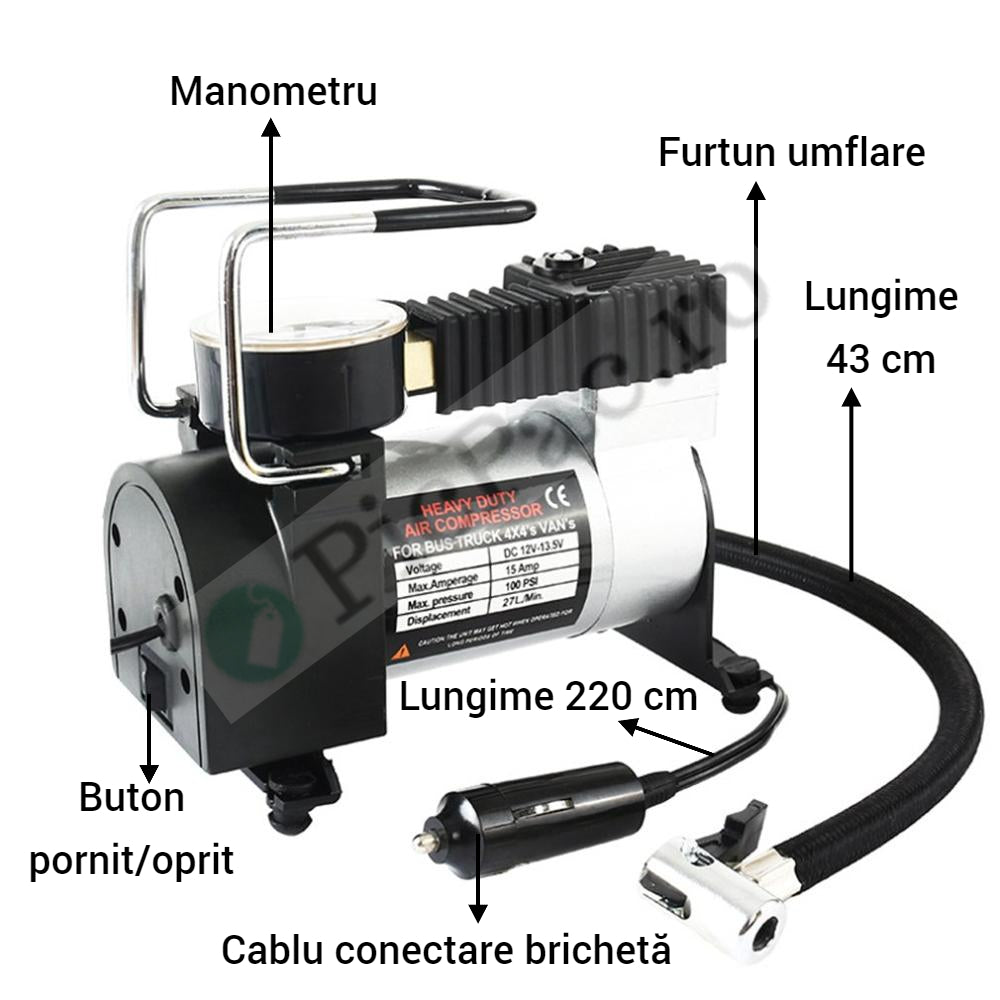 Cu o putere de 12 V si 965 KP, compresorul de fata se descurca cu orice fel de anvelopa.