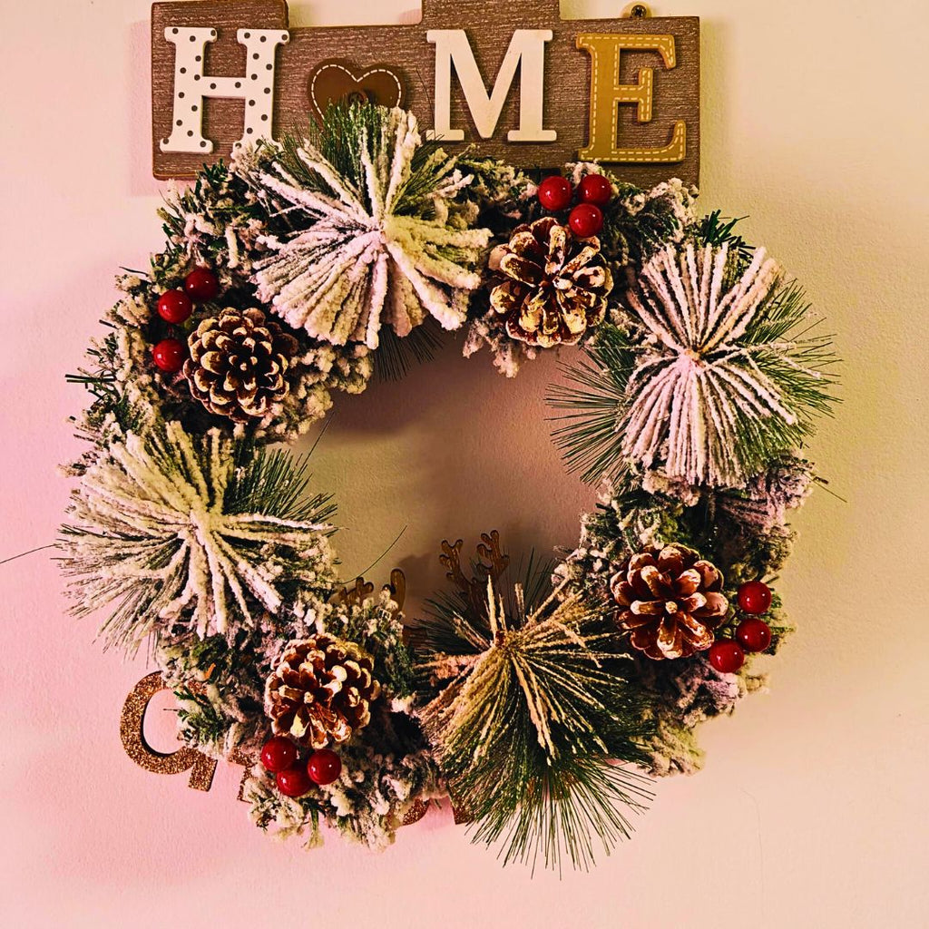 Continut pachet 1 coronita decorata cu conuri si merisoare