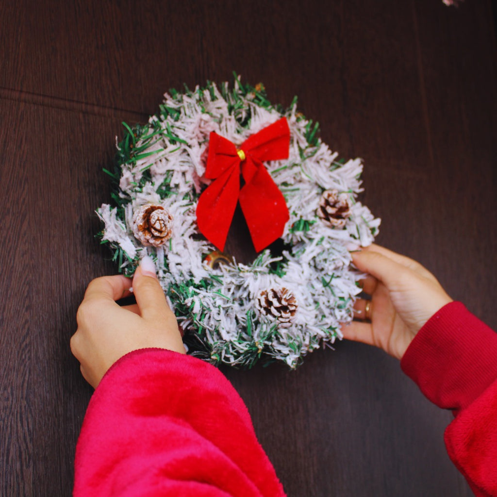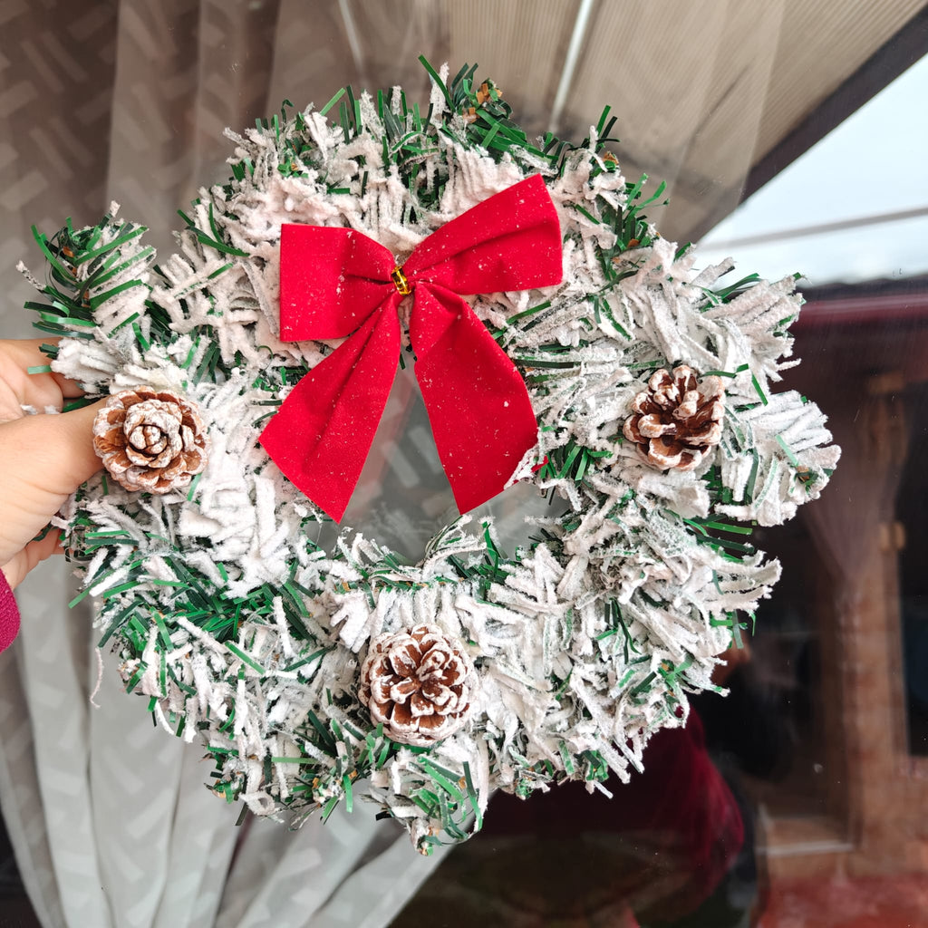 Continut pachet: 1 x Coronita pentru Craciun, decoarata cu fundita si conuri de brad