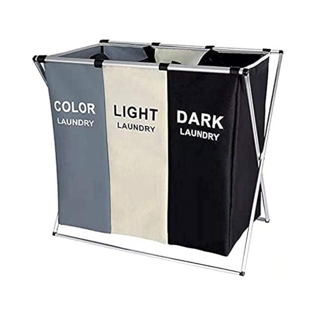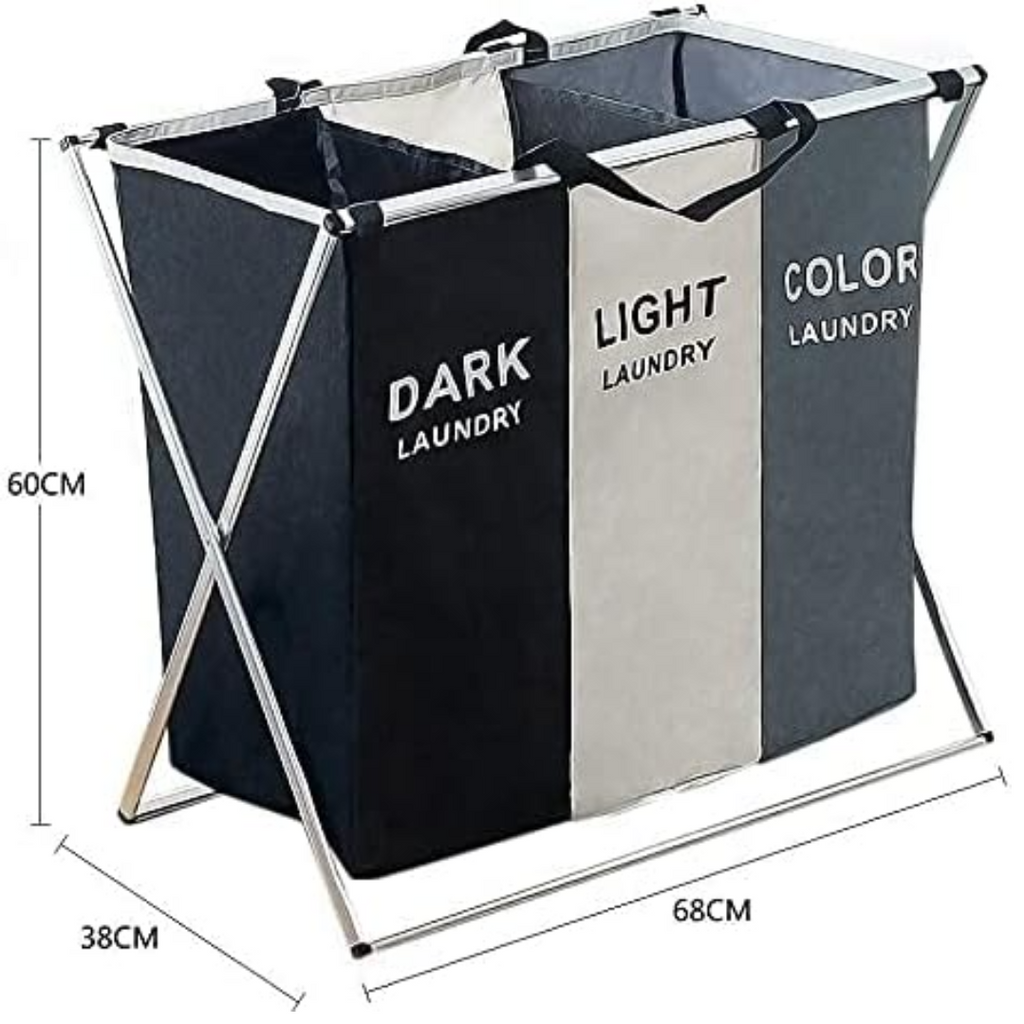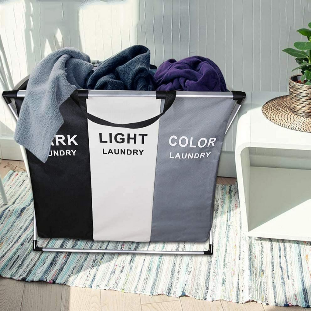 Design cu 3 compartimente: economisiți timp și efort prin sortarea prealabilă a hainelor murdare (lenjerie, șosete și alte haine / haine închise și deschise) cu acest coș de rufe.