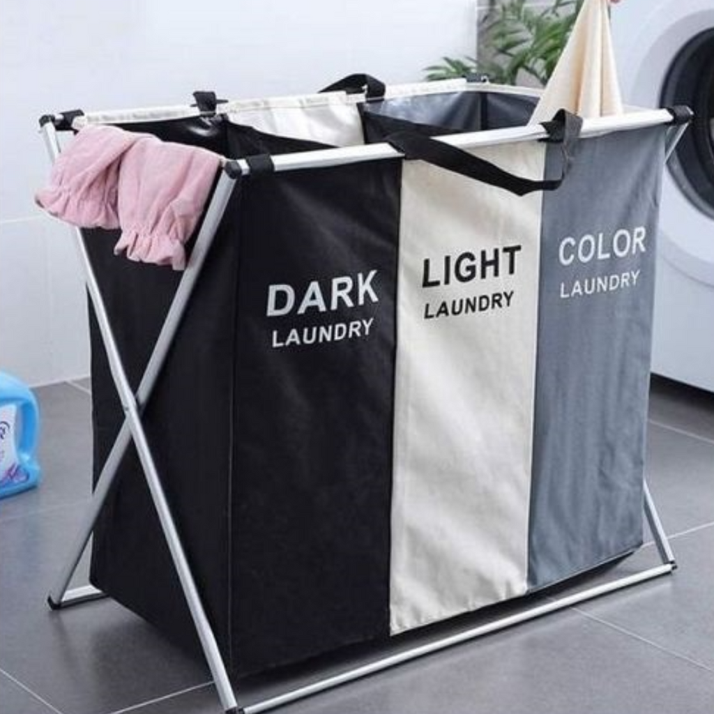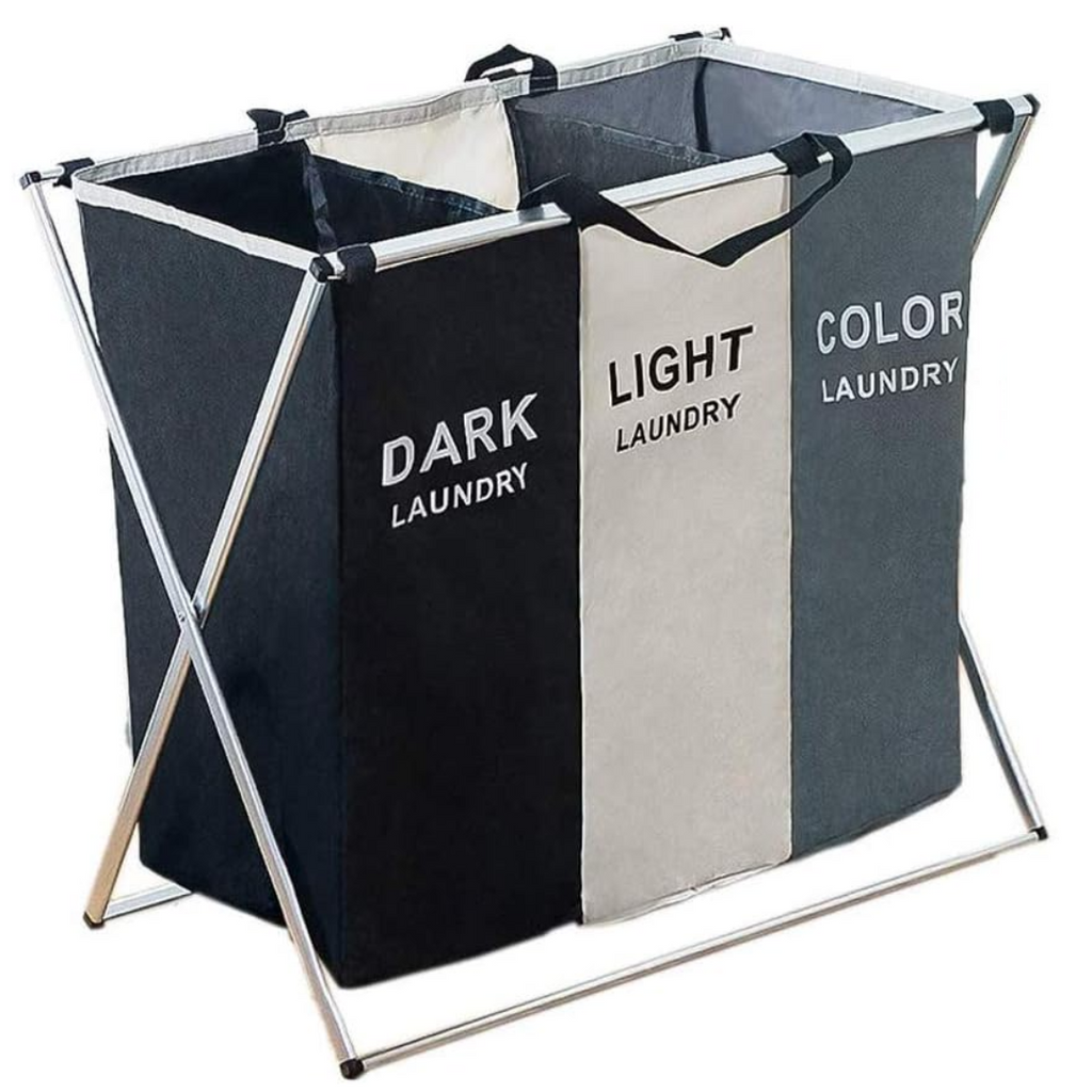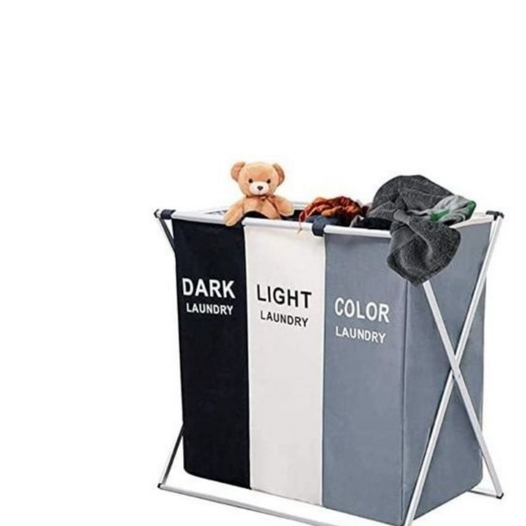 Design cu 3 compartimente: economisiți timp și efort prin sortarea prealabilă a hainelor murdare (lenjerie, șosete și alte haine / haine închise și deschise) cu acest coș de rufe.