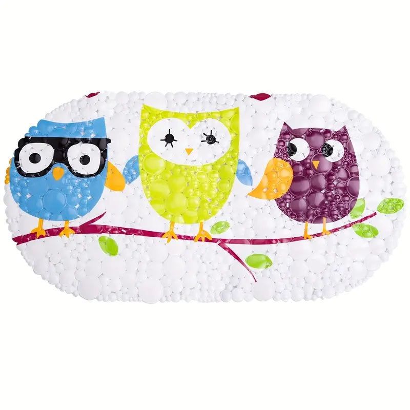 Transformă baia într-un spațiu mai sigur și mai plăcut cu acest covoraș antiderapant, conceput pentru a oferi protecție împotriva alunecărilor și un plus de confort. Designul său vesel, cu bufnițe colorate, aduce un aer jucăuș și prietenos în orice baie, fiind ideal atât pentru copii, cât și pentru adulți.