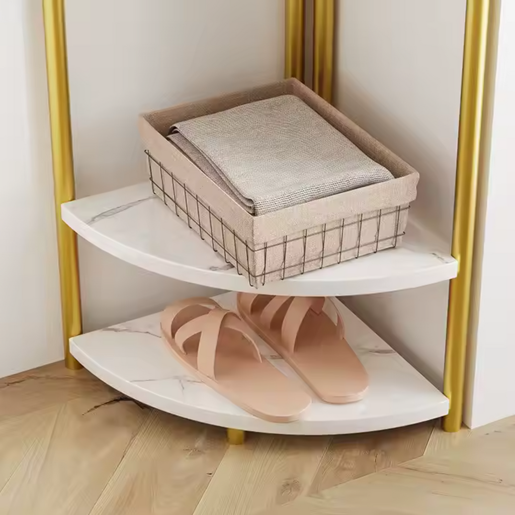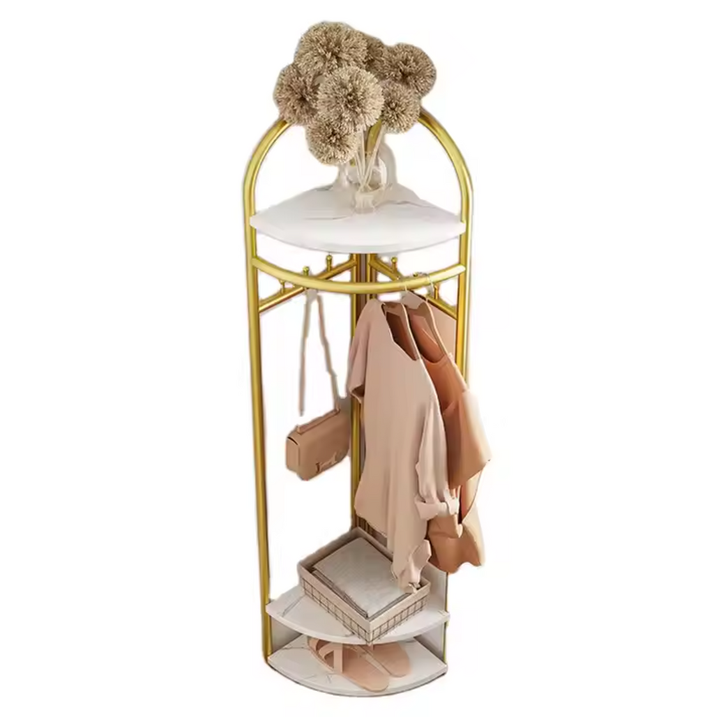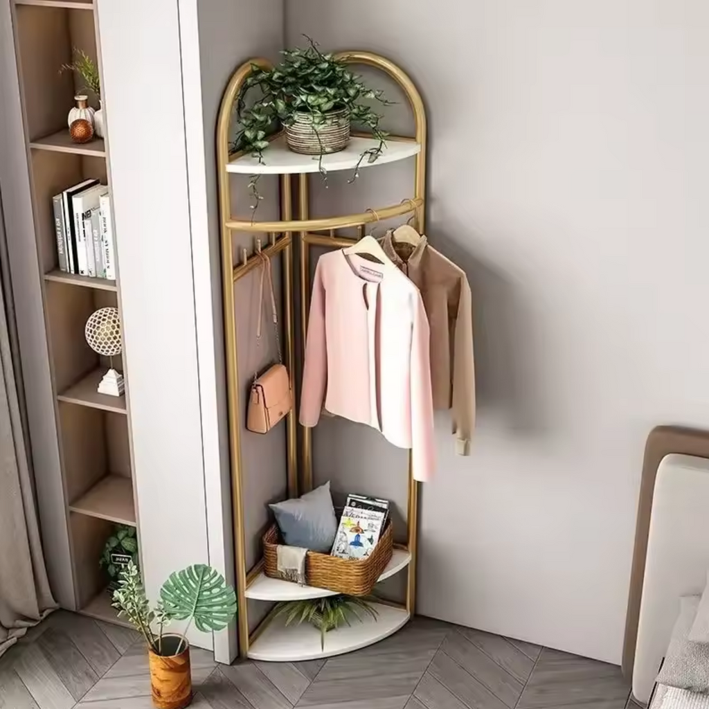 Optimizază-ți spațiul cu acest cuier de colț elegant și funcțional, ideal pentru a organiza hainele, gențile și încălțămintea într-un mod eficient și stilat.