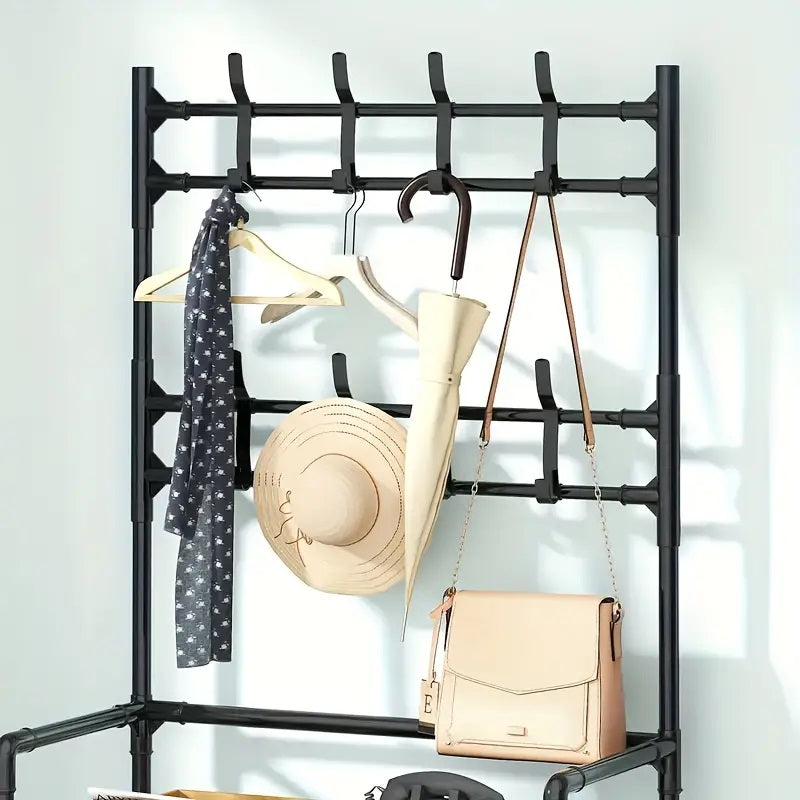 - Poate stoca haine, palarii, umbrele, genti, pantofi etc.