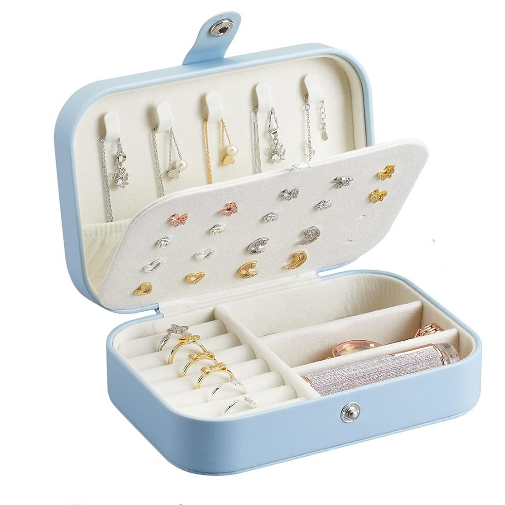 Dimensiunea organizatorului nostru de călătorie pentru bijuterii este de16 cm x 11 cm x 5 cm, este ușor de transportat într-o geantă de mână sau valiză, nu va ocupa mult spațiu în carcasa dvs., potrivită pentru o escapadă de weekend, croazieră, călătorie, facultate etc.