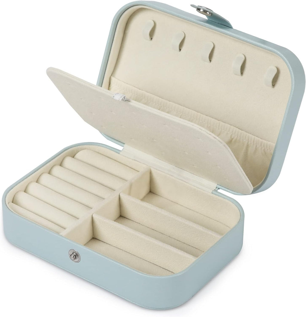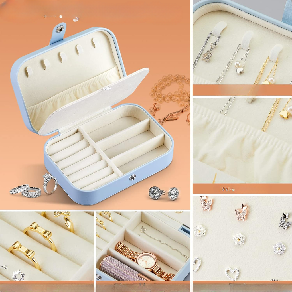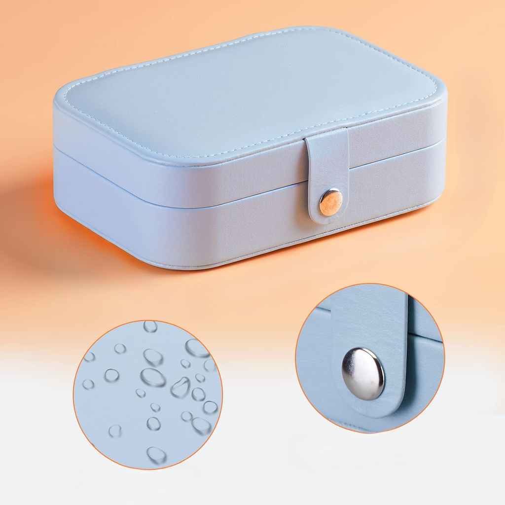 Cutia pentru bijuterii de voiaj este realizata din piele PU, rezistenta la apa si usor de curatat. Materialul interior este realizat din căptușeală moale de catifea pentru a preveni zgârierea și lovirea bijuteriilor tale. Designul de închidere rapidă vă păstrează bijuteriile în siguranță în interior, de asemenea, este ușor de deschis și închis.