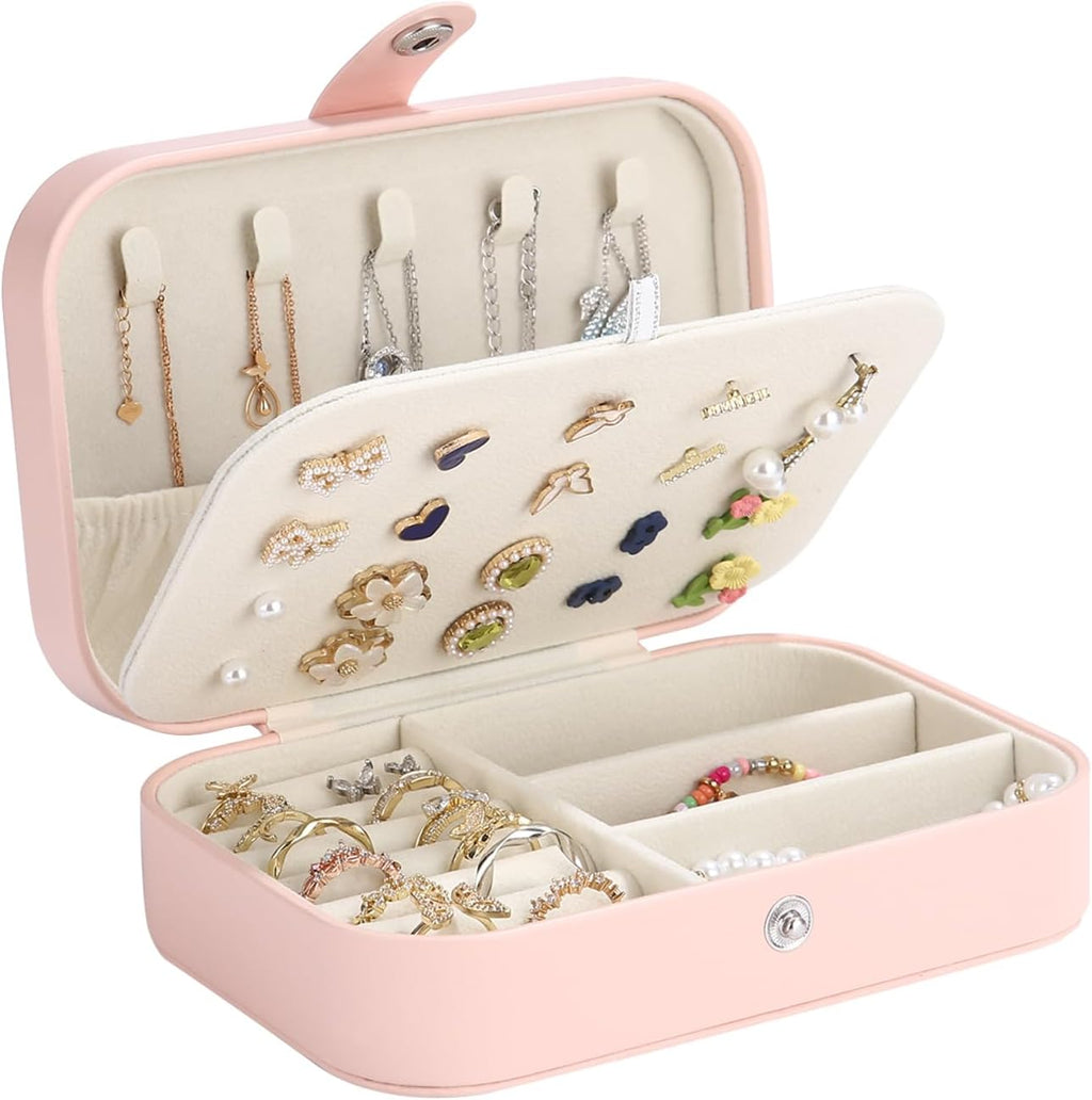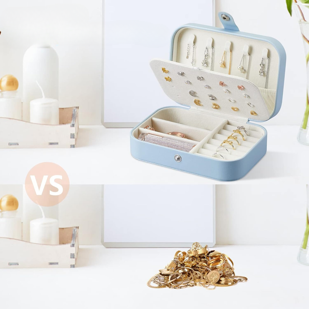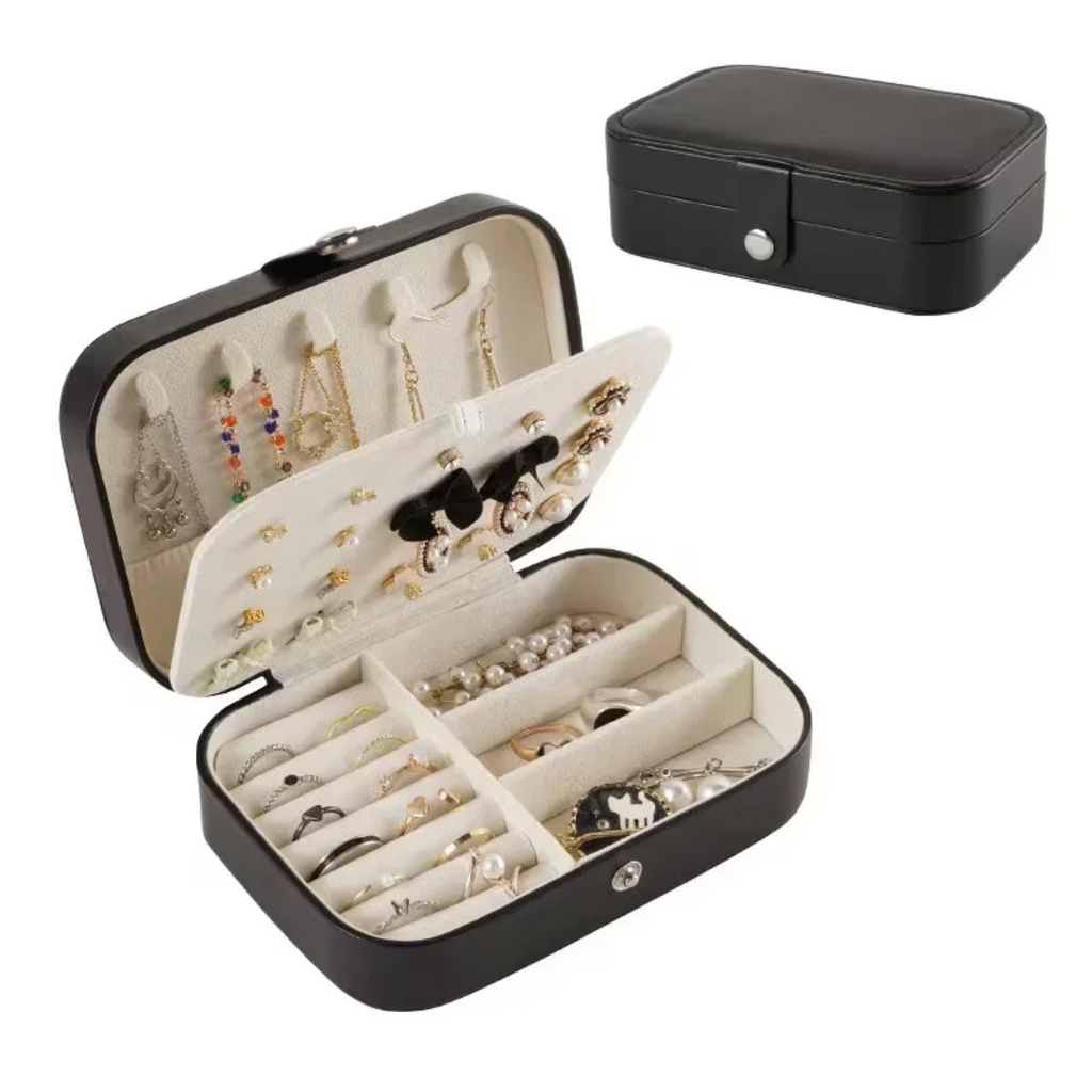 Cutia pentru bijuterii de voiaj este realizata din piele PU, rezistenta la apa si usor de curatat. Materialul interior este realizat din căptușeală moale de catifea pentru a preveni zgârierea și lovirea bijuteriilor tale. Designul de închidere rapidă vă păstrează bijuteriile în siguranță în interior, de asemenea, este ușor de deschis și închis.