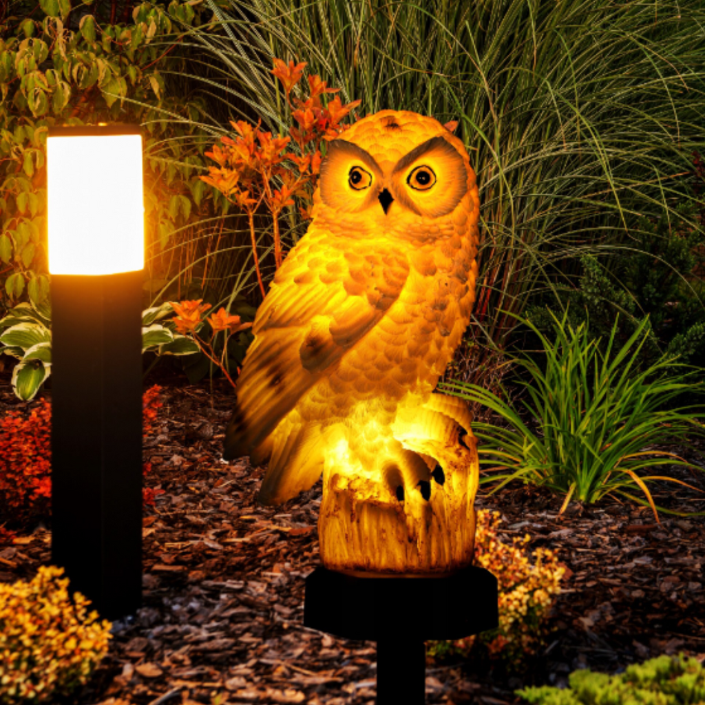 Alege o lampa solara in forma de bufnita care iti va lumina frumos gradina!