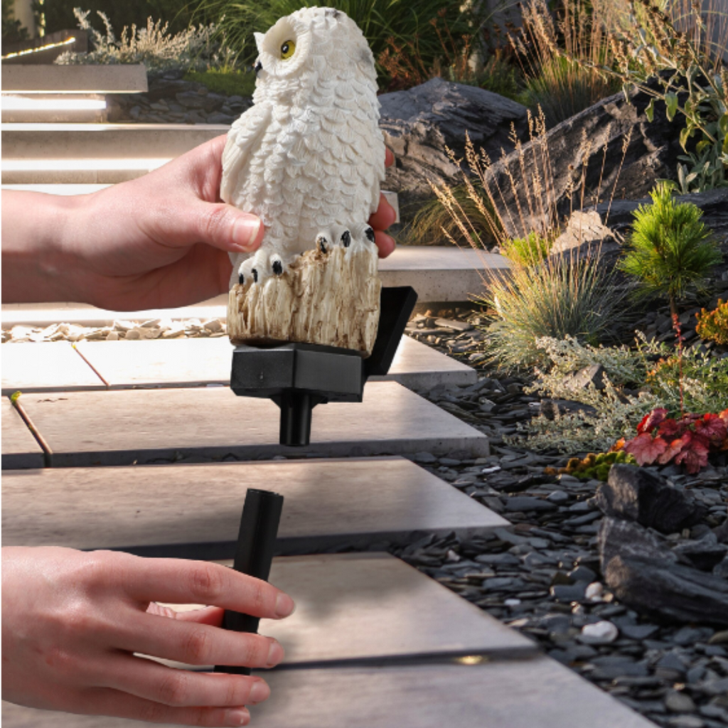 Cauti o lampa solara decorativa? Ia o figurina de bufnita! O lampa infipta in pamant va fi un element decorativ perfect. Este perfect pentru a ilumina gradini, alei, alei si ghivece de flori .