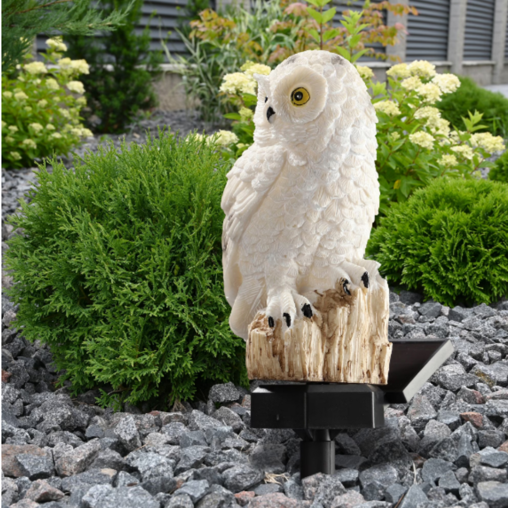 ALIMENTAT DE ENERGIE REGENERABILA - figurina bufnita alba este o lampa solara alimentata cu energie solara . Acest lucru il face nu numai ieftin de intretinut, ci si ecologic. In plus, designul rezistent la apa face ca lampa sa fie durabila. Prin urmare, este dificil sa-l distrugi sau sa-l strici.
