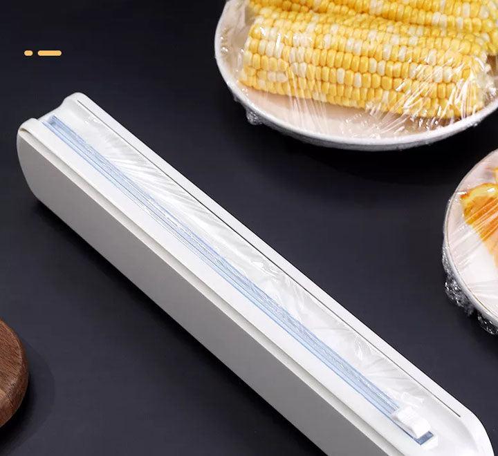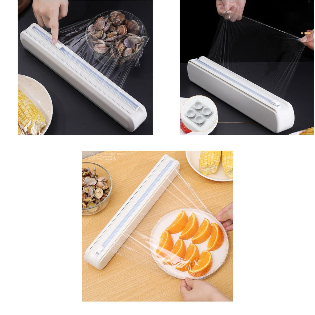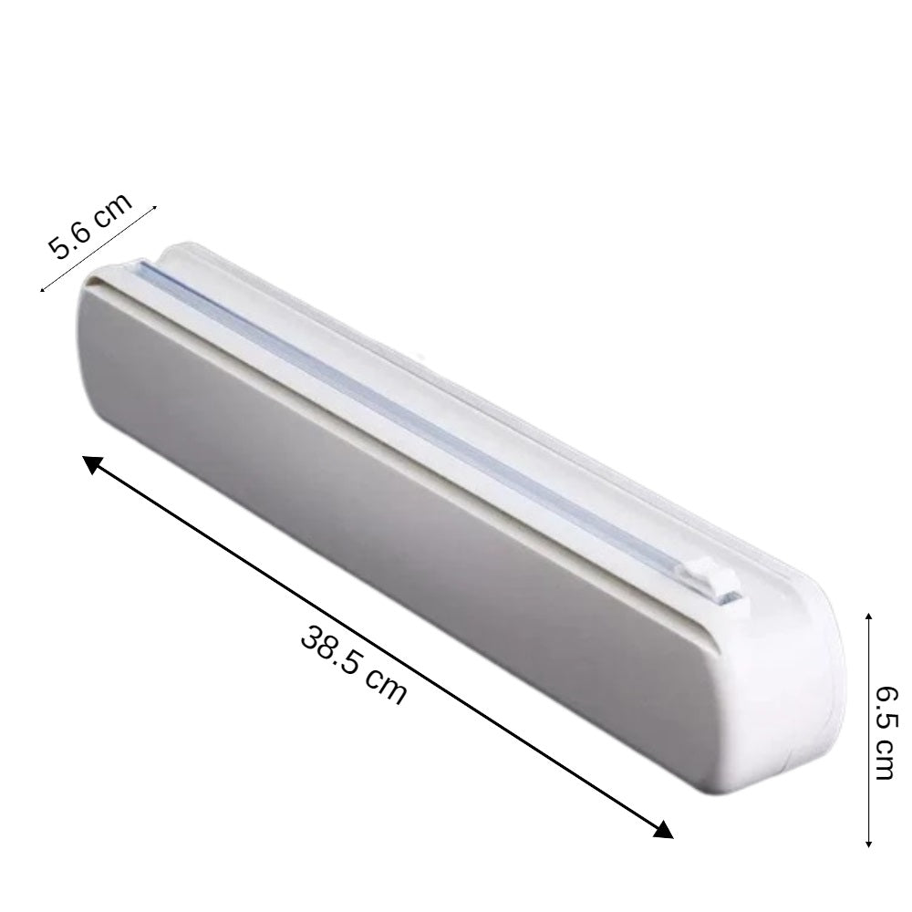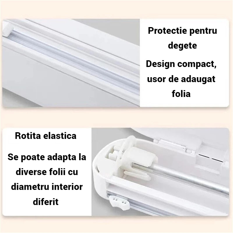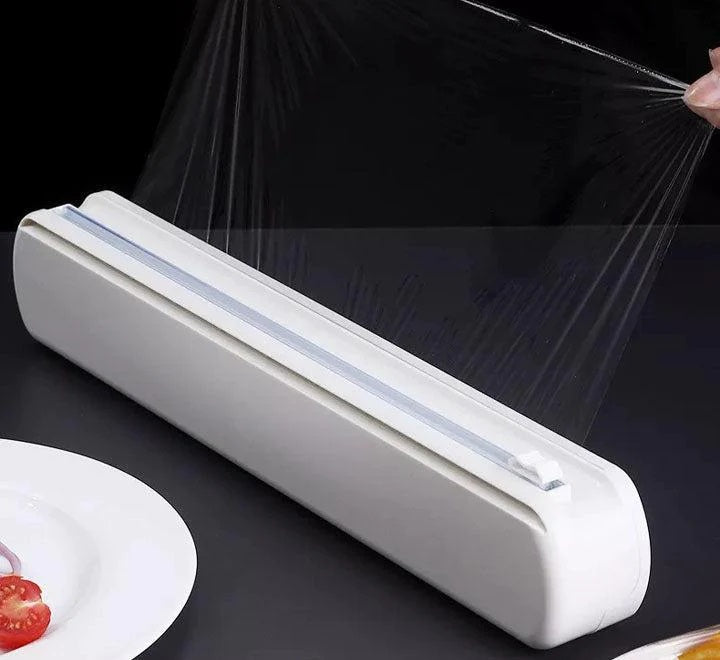 Acest dispenser este un accesoriu de nelipsit din bucatarie. Dotat cu ventuze pe partea din spate, poate fi plasat cu usurinta pe frigider, faianta, dulap. Inovatorul dispenser ofera o distribuire si taiere perfecta a foliei. Acest dispenser de folie de plastic face ca impachetarea alimentelor sa fie rapida si usoara.