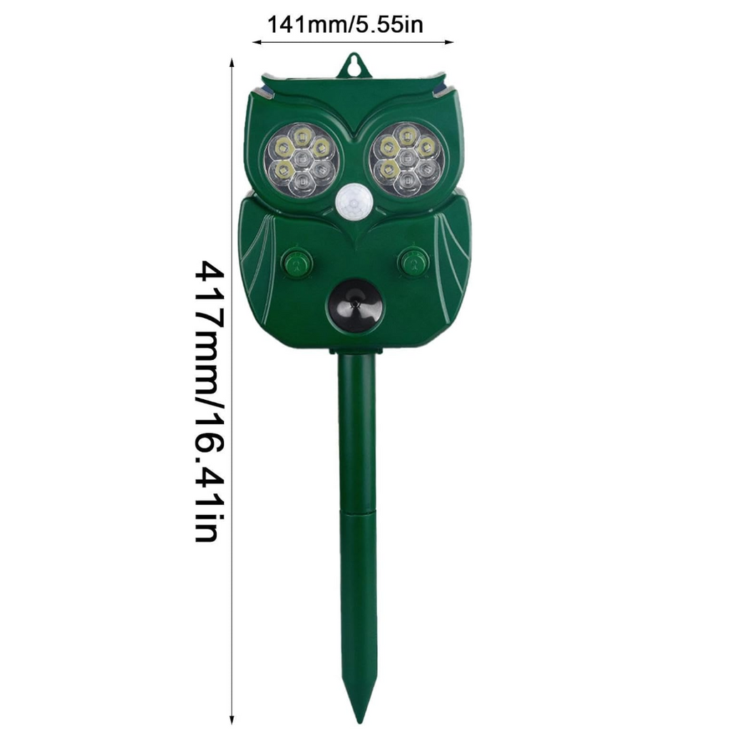 Acest dispozitiv alimentat solar emite unde ultrasonice de la 9KHZ la 70KHZ și 5 moduri de rebound din care să alegeți. Nu numai că poate alunga în mod eficient animalele mari, cum ar fi urșii și mistreții, ci și animalele mici precum șobolanii, pisicile, păsările, vulpile. Multifuncțional pentru diferite animale și mediu.