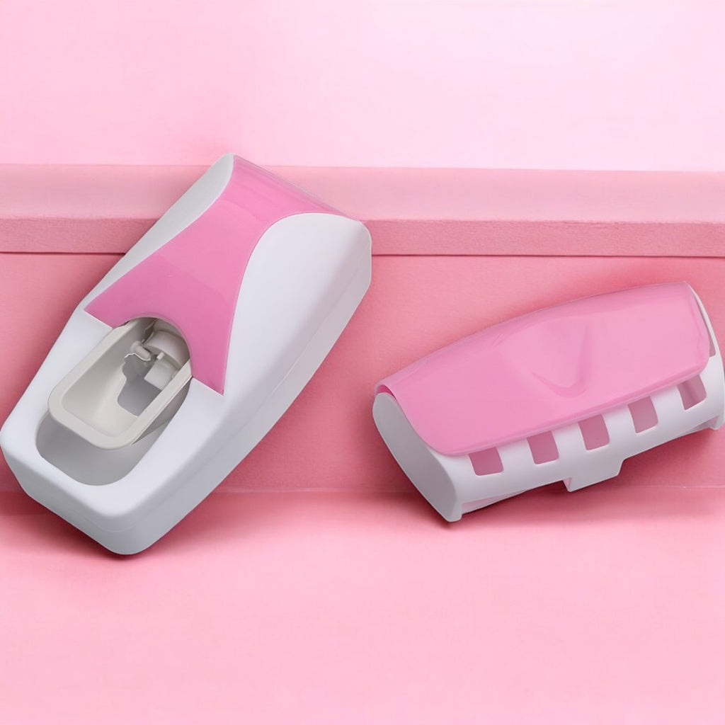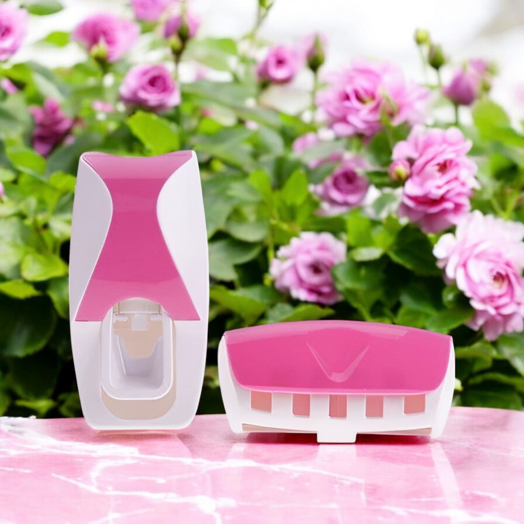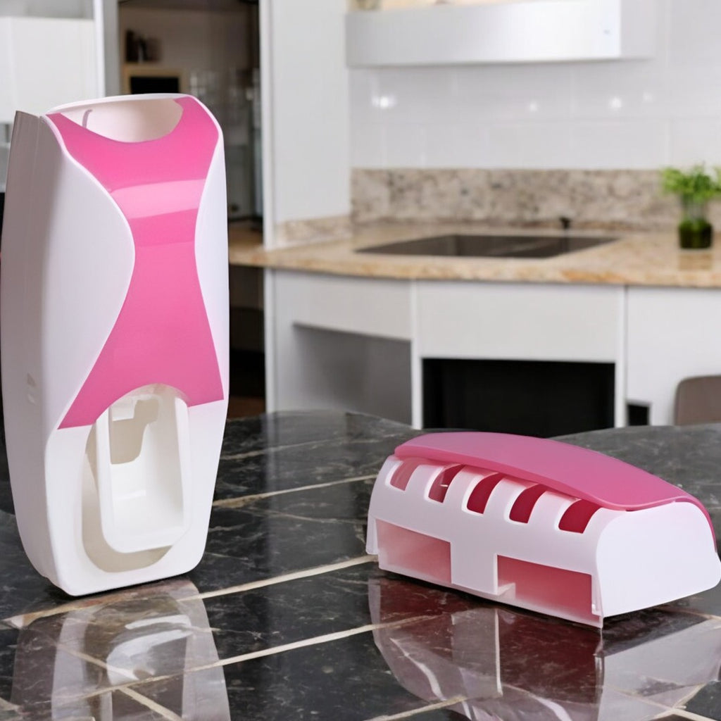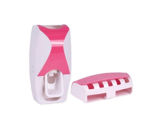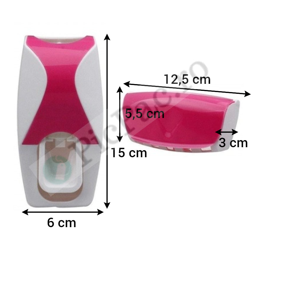 Dimensiuni: - dimensiuni dozator pasta de dinti: 6,0 x 15 cm - dimensiuni suport periute: 5,5 x 11 cm Nu necesita baterii, are autocolant inclus Nu necesita baterii Suport inclus pentru periutele de dinti Culoare: roz Rezistent la praf, datorita capacului.