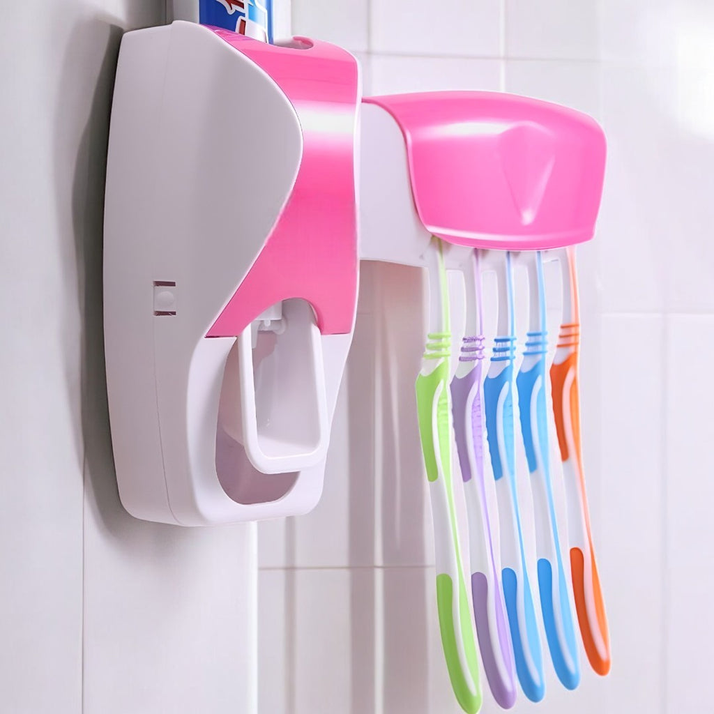Beneficii - Dispozitiv util si comod - Compatibil cu toate tuburile clasice de pasta de dinti - Ideal pentru a pastra baia curata si ordonata - Dozatorul este usor de instalat - Usor de folosit, mai ales de copii si de persoanele in varsta - Faci economie de bani, deoarece extrage si ultima picatura de pasta de dinti din tub - Poate sustine 5 periute deodata