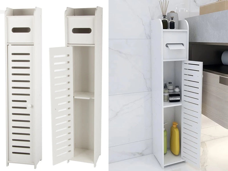 Cu rafturi spațioase și un design bine gândit, acest dulap îți permite să păstrezi baia ordonată și elegantă.
