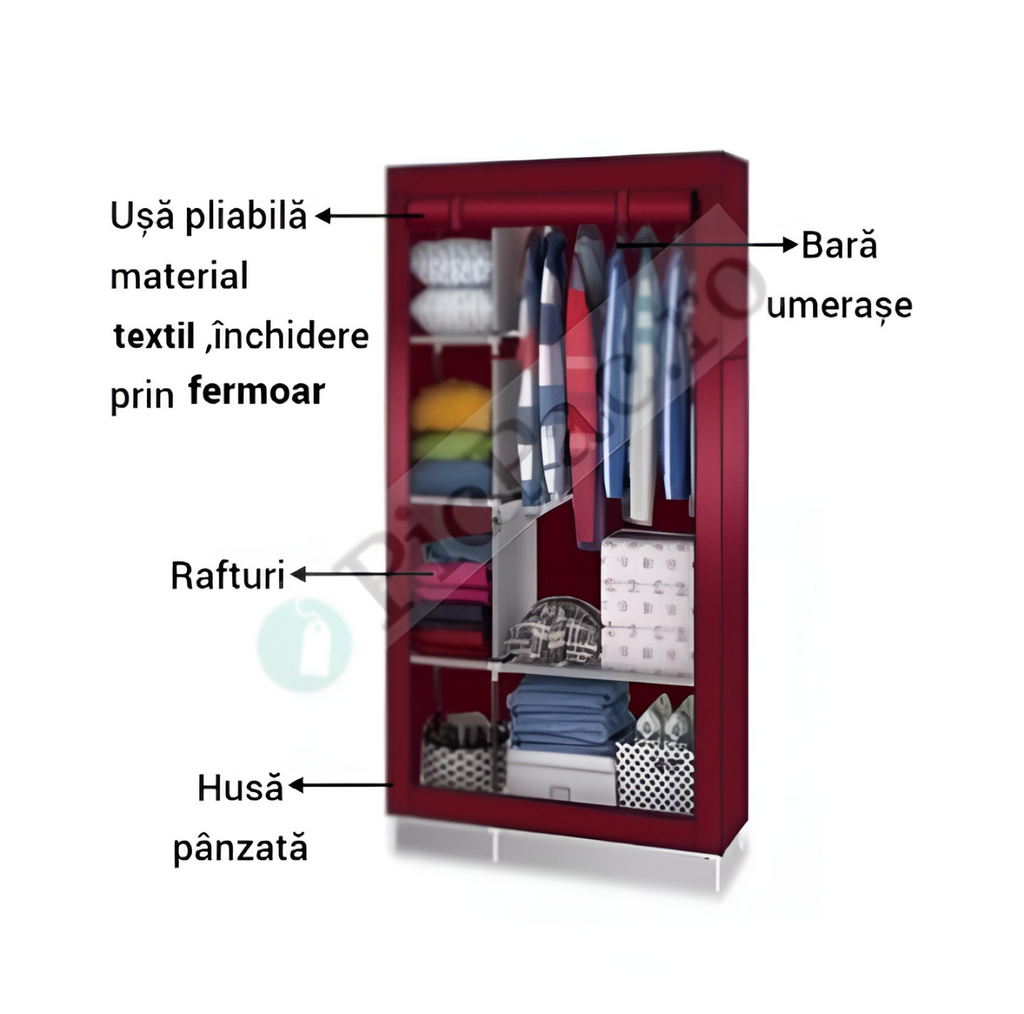 - Acest dulap textil ofera suficient spatiu pentru hainele tale.