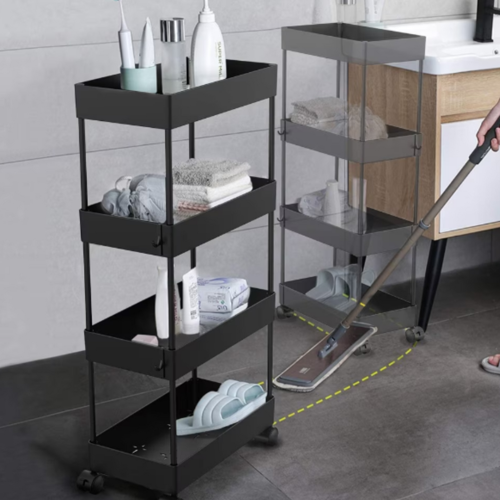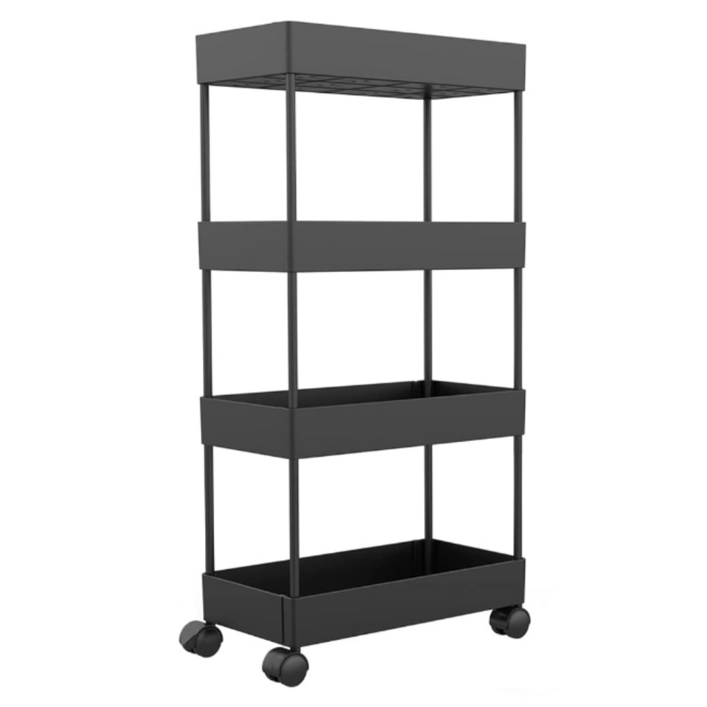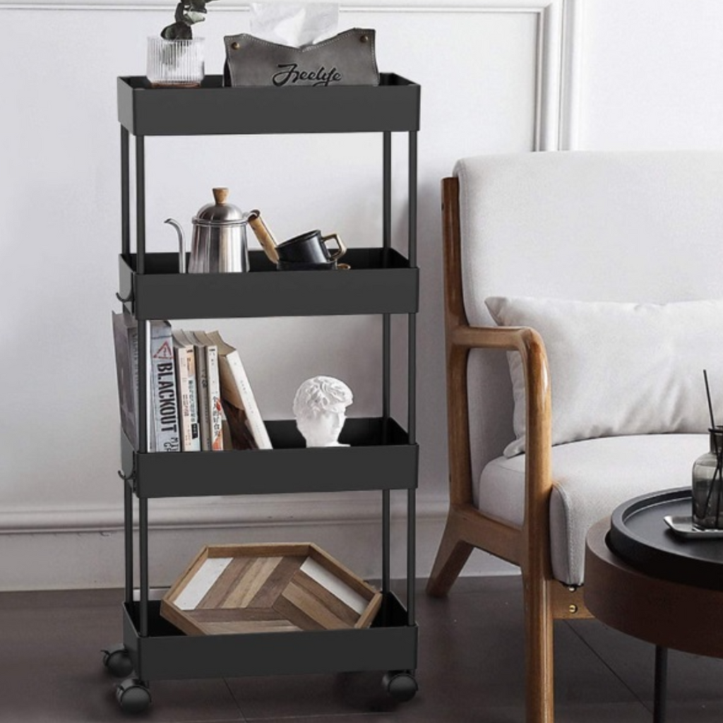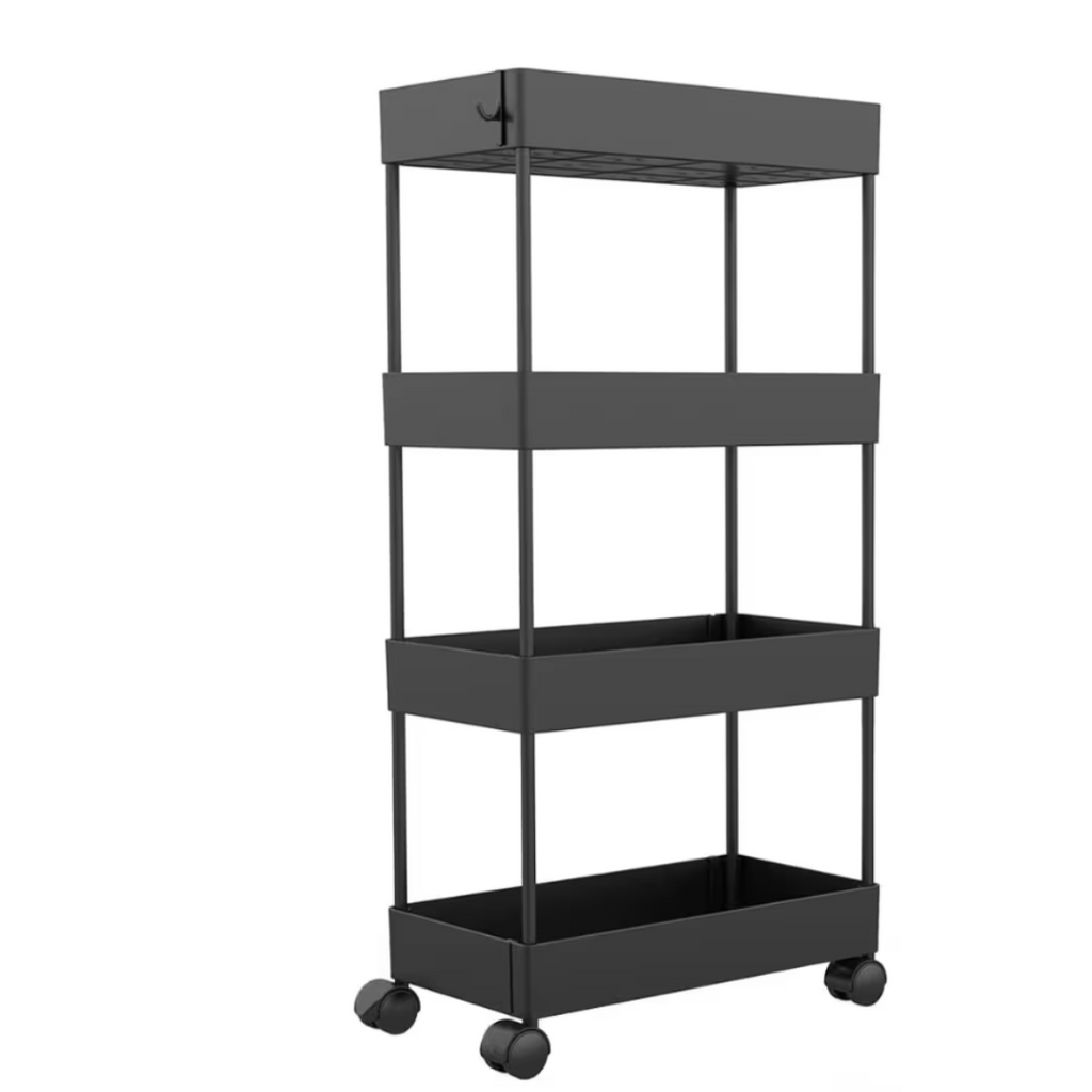 Cu etajera mobila cu roti, 4 rafturi de depozitare, utila pentru spatii inguste, va veti simti in casa dumneavoastra asa cum va doriti - fara dezordine, lucruri imprastiate peste tot sau lipsa de spatiu. Aceasta etajera ajuta la buna functionare a oricarei gospodarii.