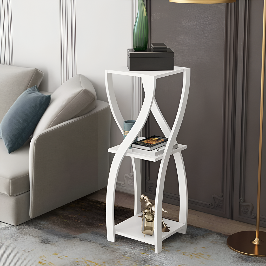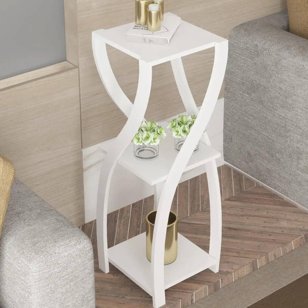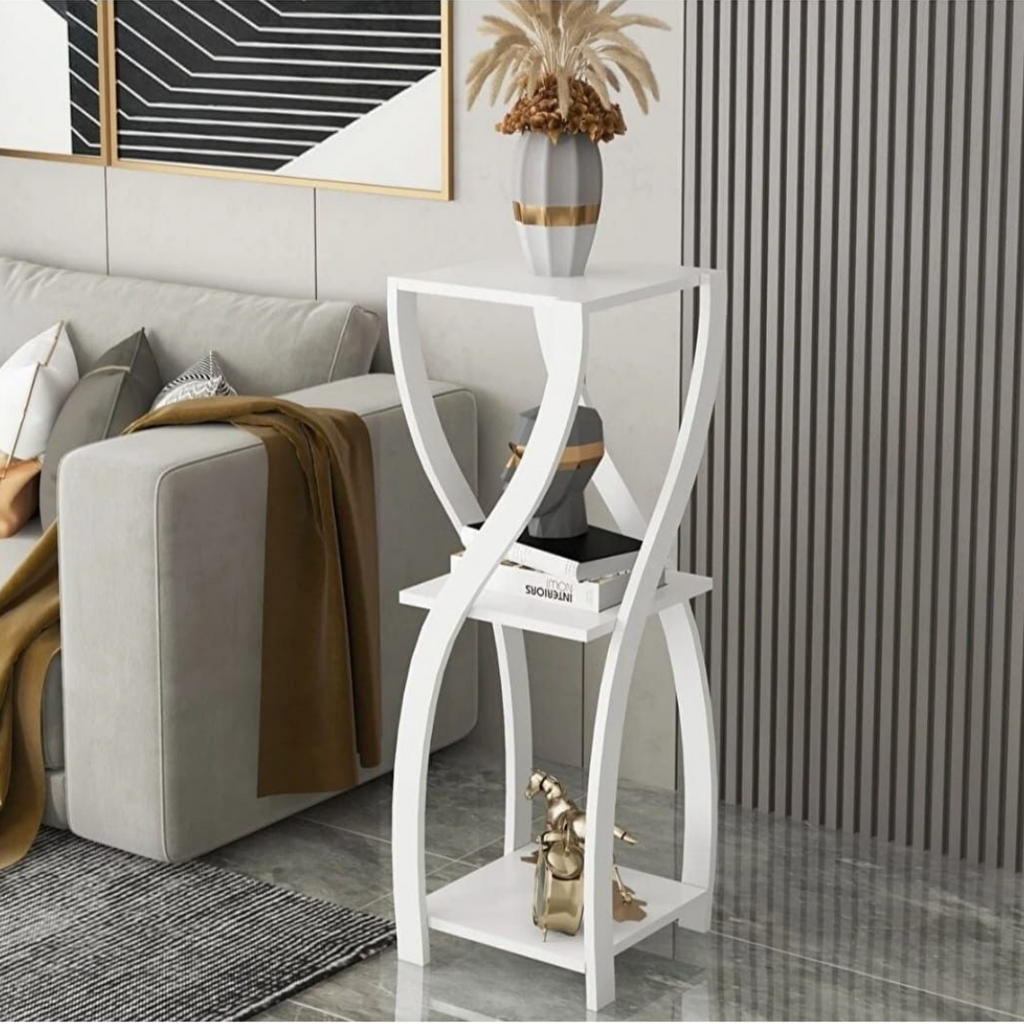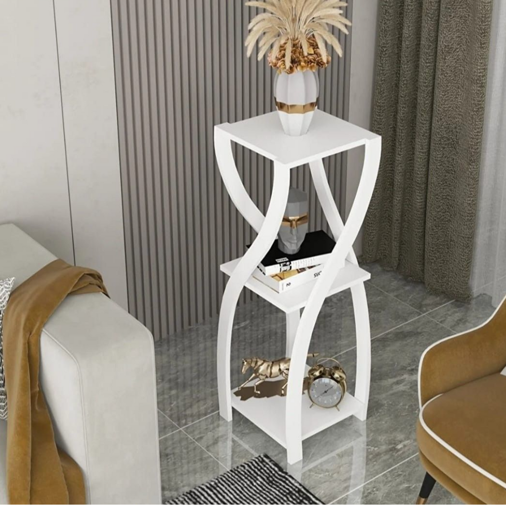 Masa Supraetajata cu 3 platforme cu un design minimalist si alb, potrivindu-se cu usurinta in orice decor de dormitor sau camera. Liniile curate si culorile neutre o fac sa se potriveasca cu diverse stiluri de amenajare.
