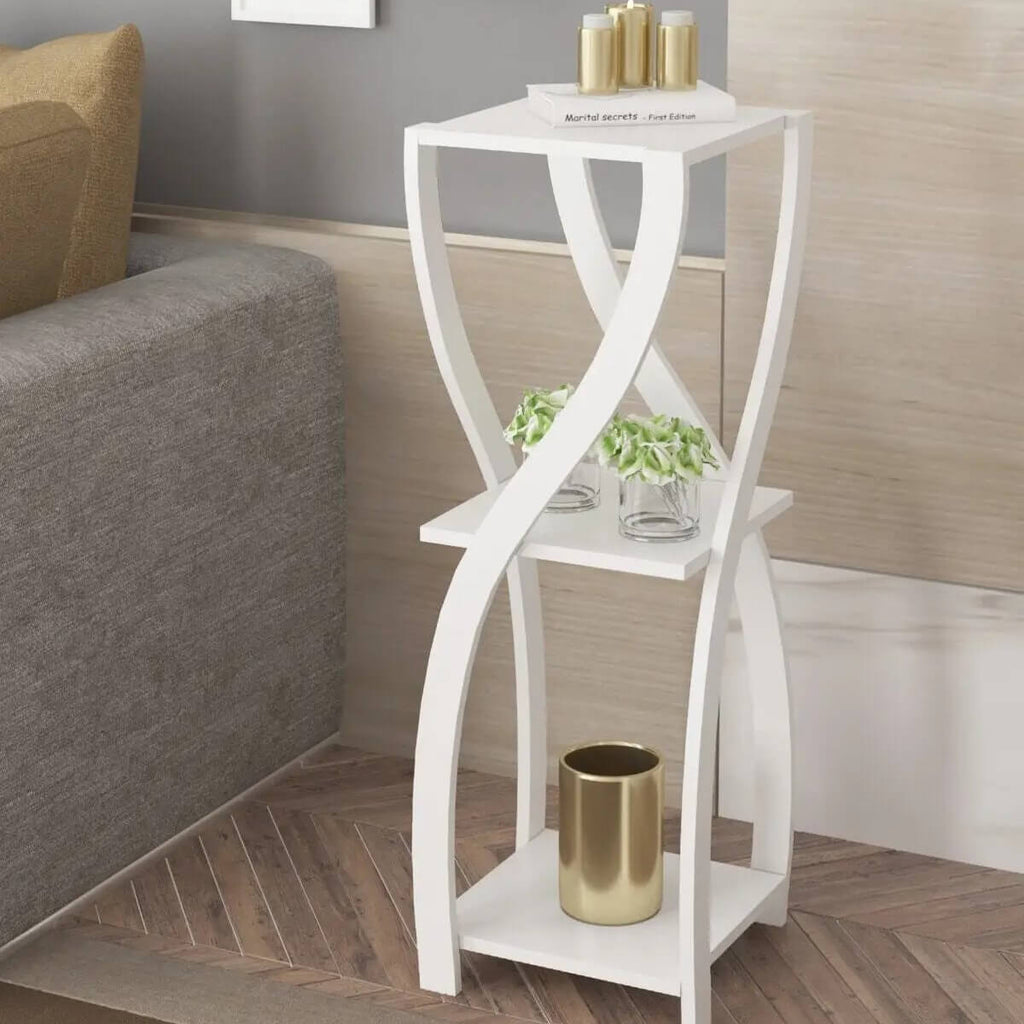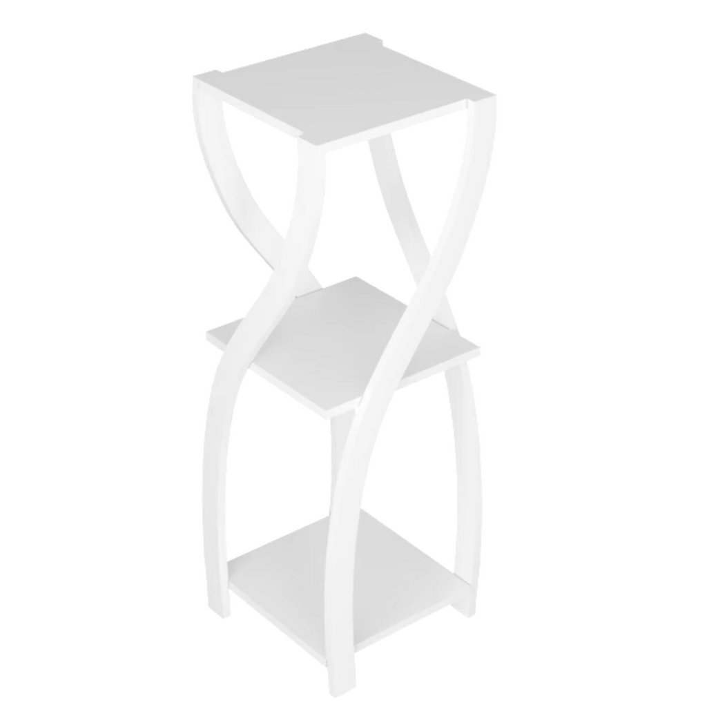 Masuta tip noptiera, robusta si rezistenta la uzura, cu 3 etajere, alba