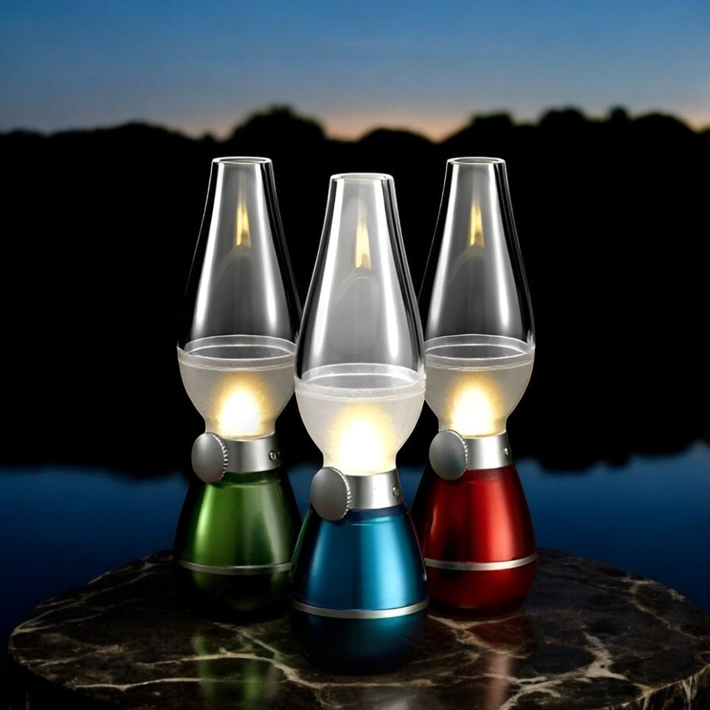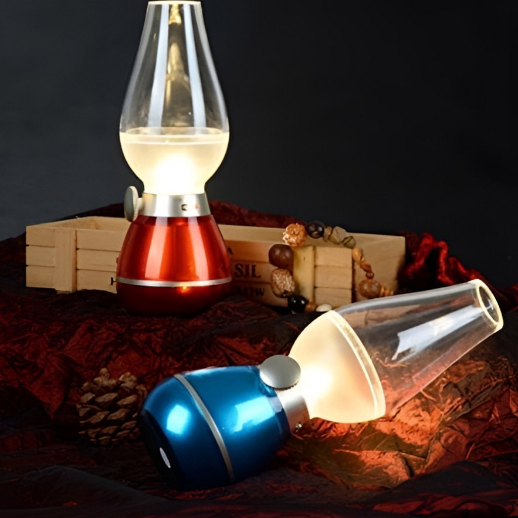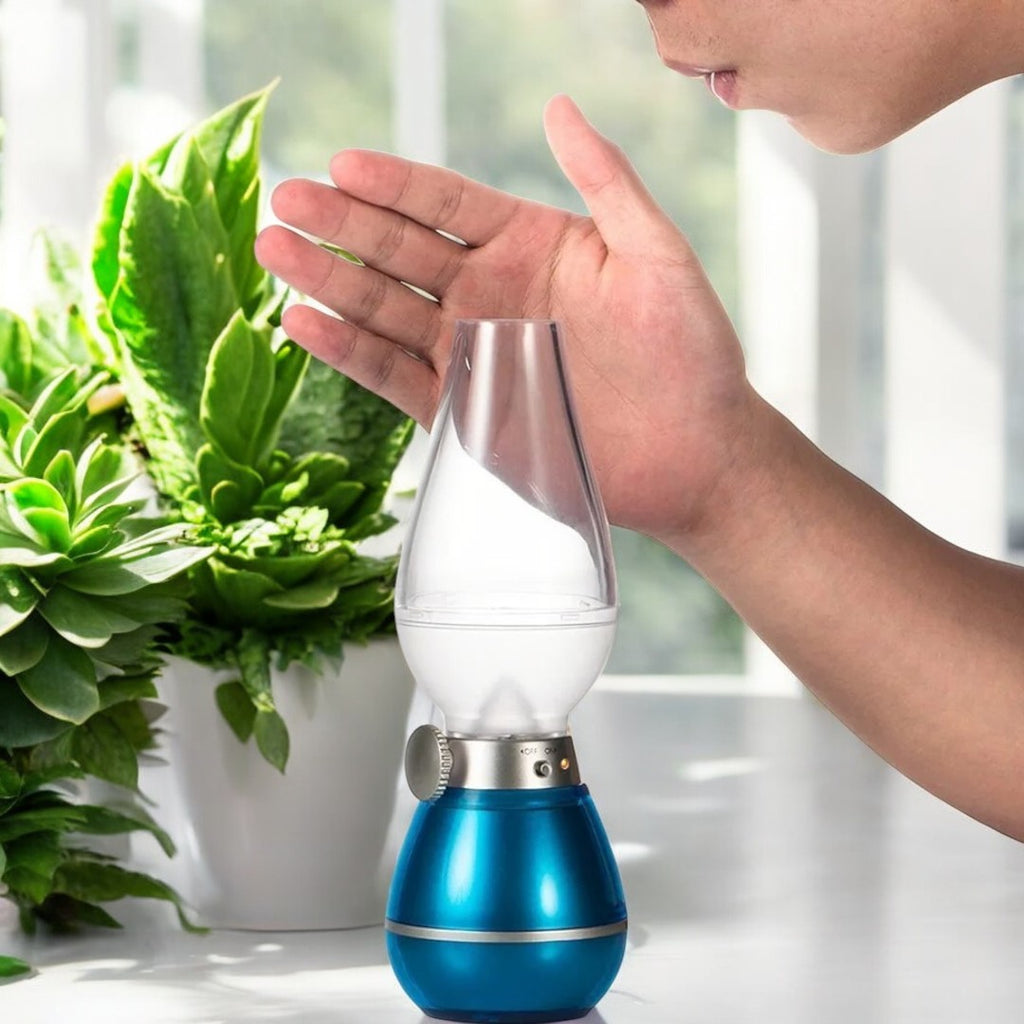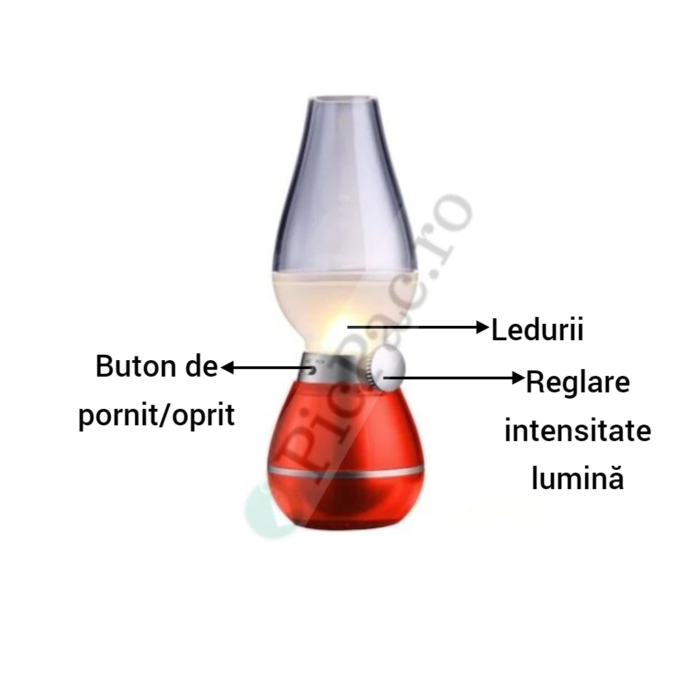 Beneficii: -Acesta functioneaza pe baza unui acumulator reincarcabil prin intermediul unui cablu USB. -Urmand intocmai designul felinarelor arhaice acesta are o forma eleganta, fiind confectionat din material plastic atent finisat. -Permite si reglarea intensitatii luminoase a LED-urilor. -Functioneaza pe un principiu foarte simplu: pentru a stinge lumina pur si simplu suflati spre orificiul din partea de sus, ca si cum ati dori sa stingeti flacara unei lumanari.