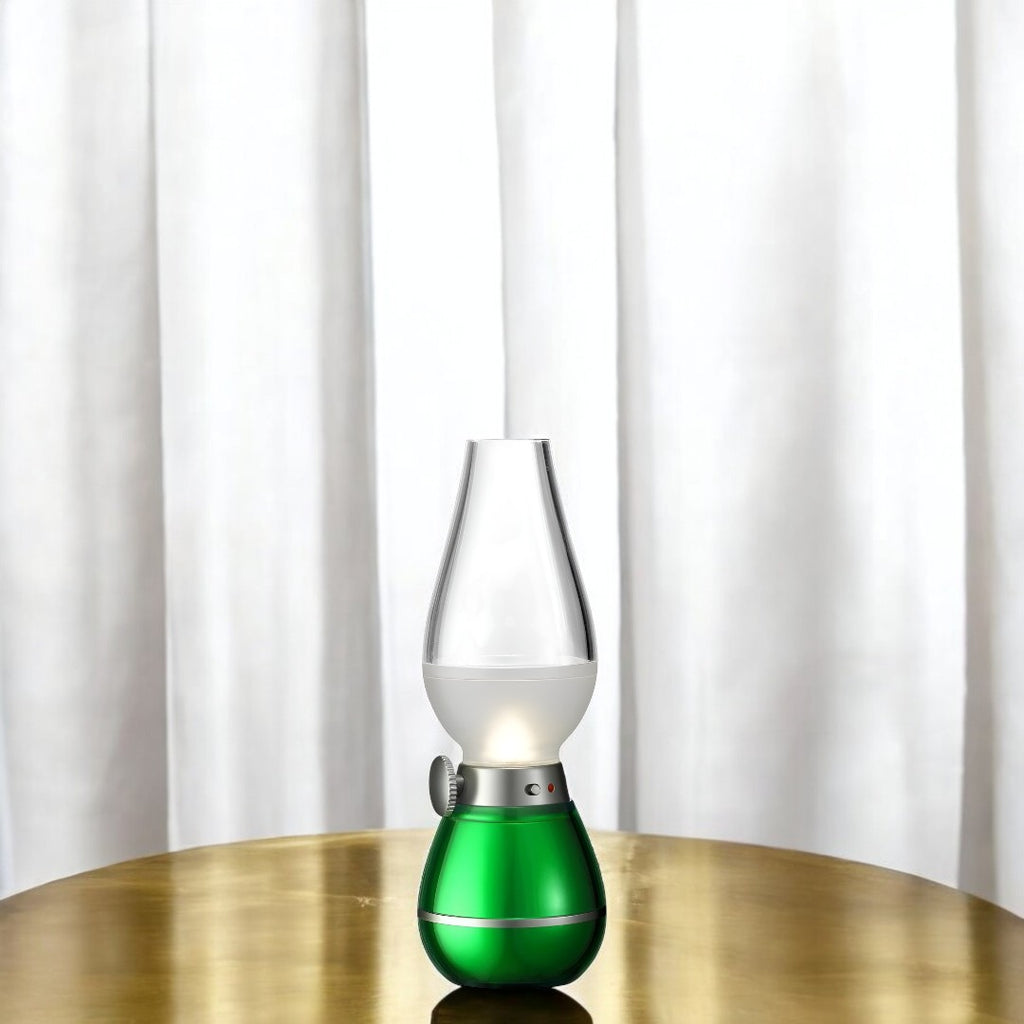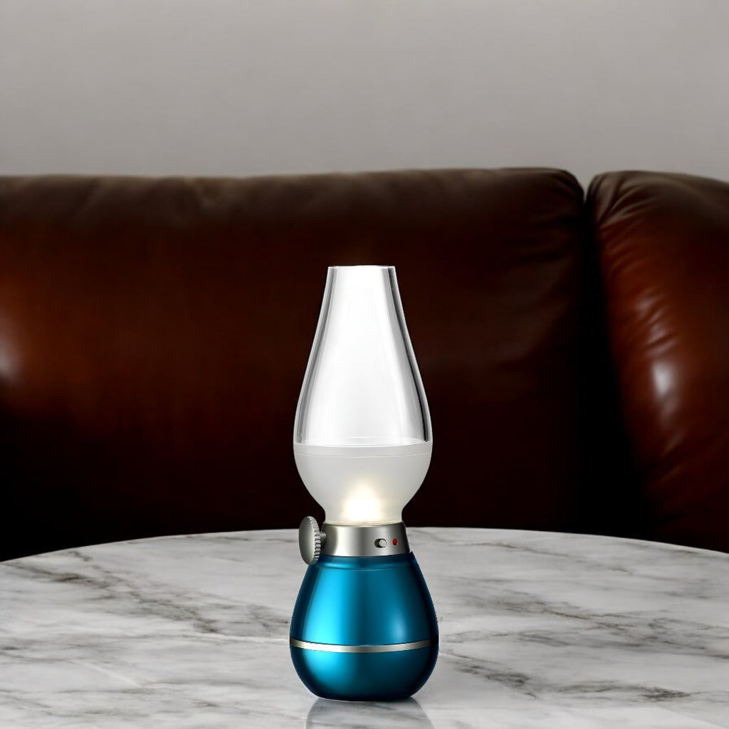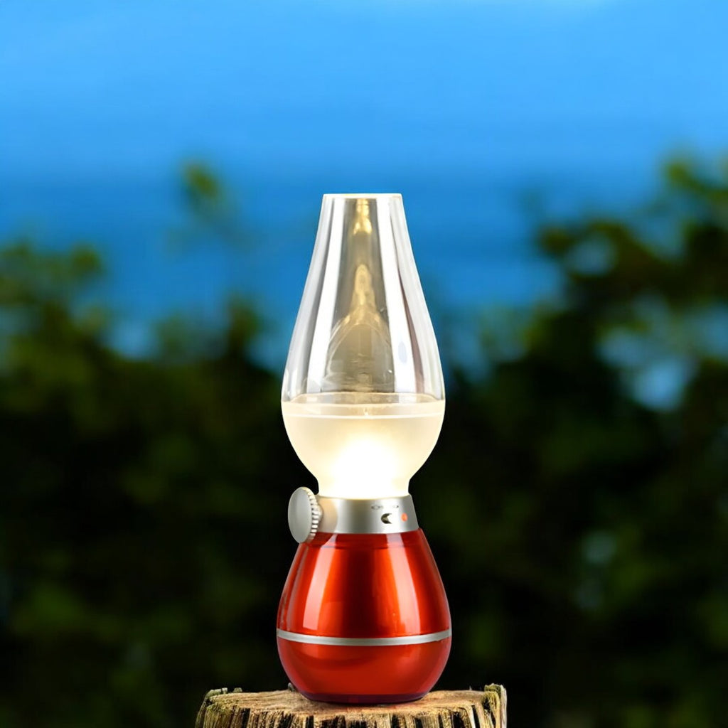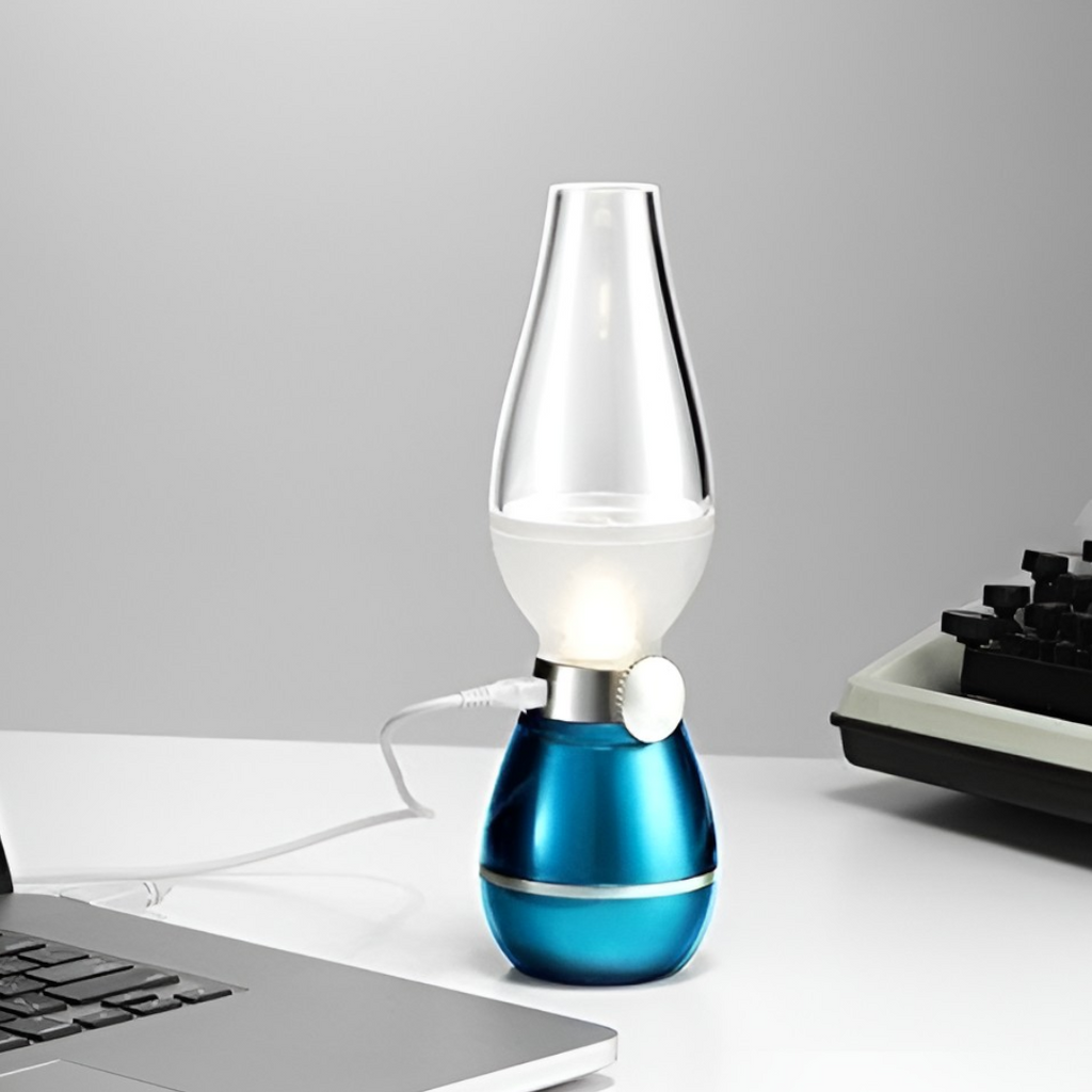Beneficii: -Acesta functioneaza pe baza unui acumulator reincarcabil prin intermediul unui cablu USB. -Urmand intocmai designul felinarelor arhaice acesta are o forma eleganta, fiind confectionat din material plastic atent finisat. -Permite si reglarea intensitatii luminoase a LED-urilor. -Functioneaza pe un principiu foarte simplu: pentru a stinge lumina pur si simplu suflati spre orificiul din partea de sus, ca si cum ati dori sa stingeti flacara unei lumanari.