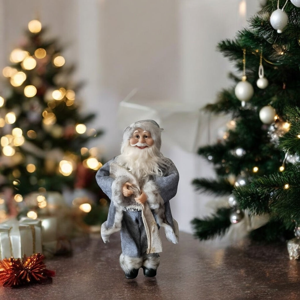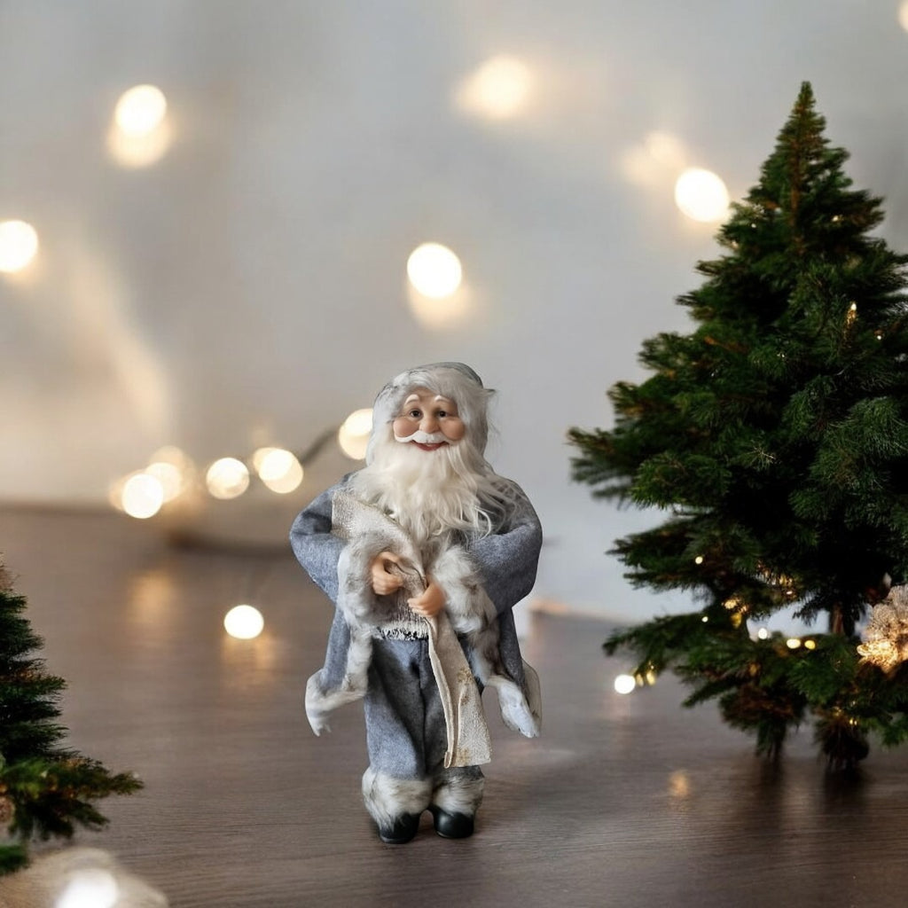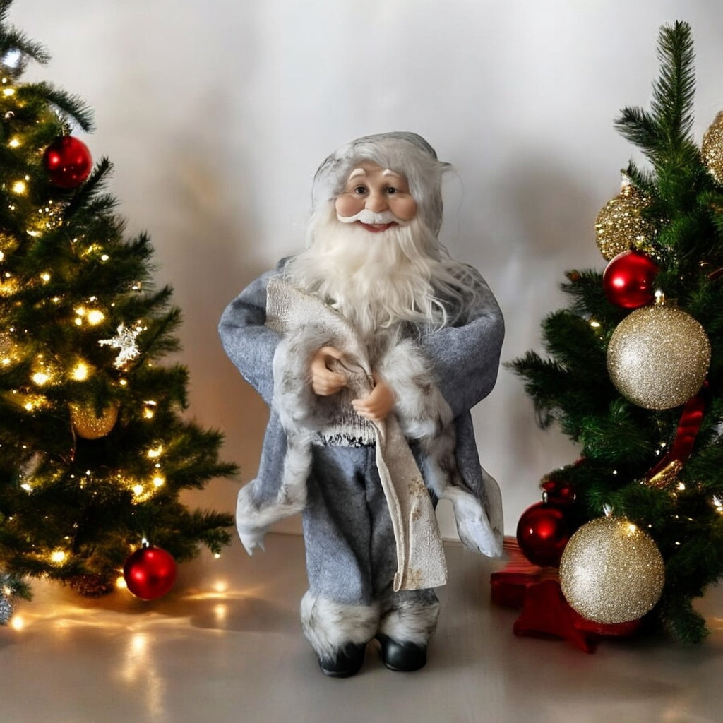 Această figurină de Moș Crăciun gri aduce un aer sofisticat și festiv casei dumneavoastră, fiind perfectă pentru a crea un decor de Crăciun deosebit și stilat!