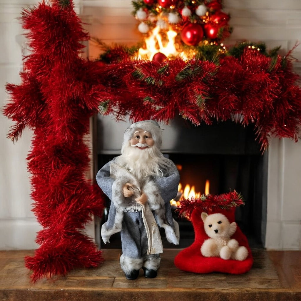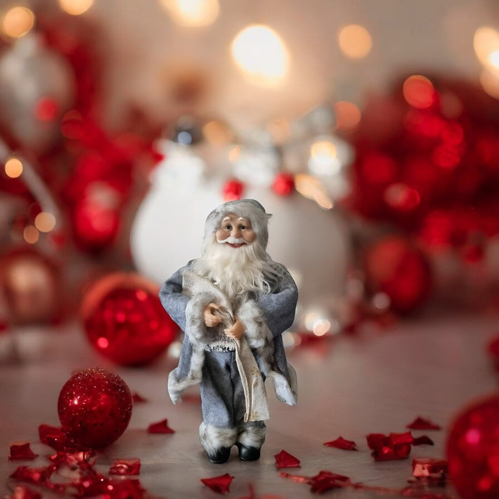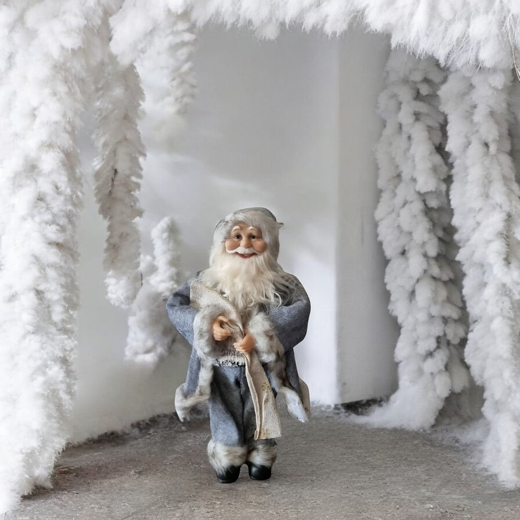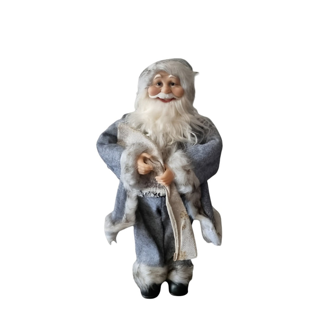 Această figurină de Moș Crăciun gri aduce un aer sofisticat și festiv casei dumneavoastră, fiind perfectă pentru a crea un decor de Crăciun deosebit și stilat!