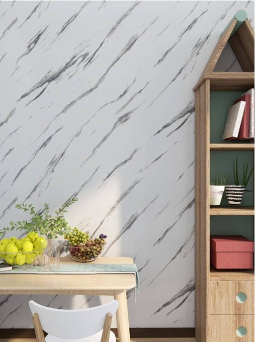 Transformă-ți spațiul cu ajutorul acestei folii autoadezive pentru perete, care imită cu succes aspectul elegant al marmurei albe. Cu dimensiuni de 0.6 x 3 m, aceasta este perfectă pentru a adăuga un aer sofisticat în orice cameră, de la baie și bucătărie, până la livinguri și holuri.