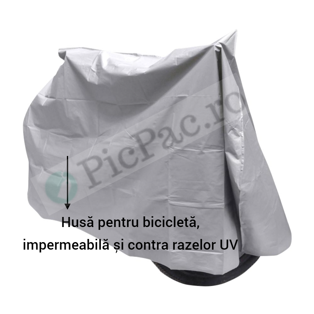 Husa pentru bicicleta, impermeabila si contra raze UV, se fixeaza foarte bine pe bicicleta, nu zboara si nu atarna pe jos.