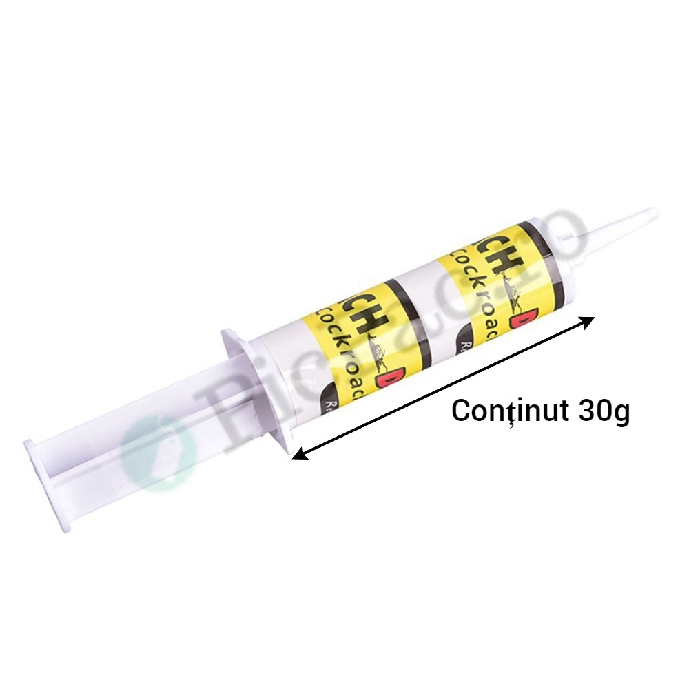 O seringa contine 30g de substanta tip gel. Este o momeala insecticida conditionata sub forma de gel de culoare alba avand drept substanta activa imidaclopirid-ul. Substanta actioneaza blocand functionarea centrilor nervosi ai daunatorului. Nota! A nu fi lasat la indemana copiilor si animalelor de companie.
