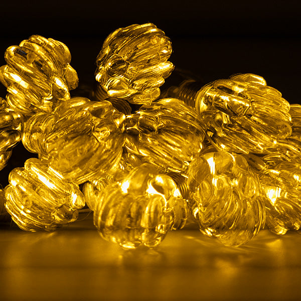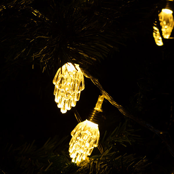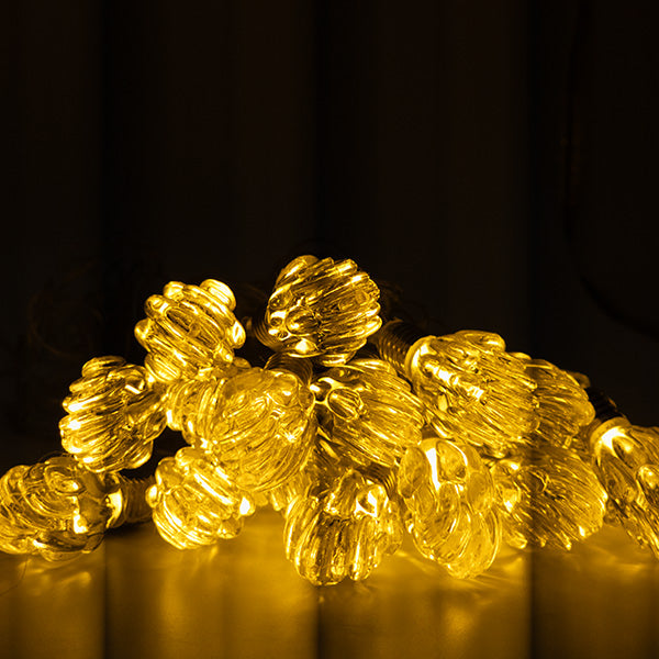 Instalația cu lumina alb cald, având model de conuri, lungime de 5 metri și 20 de beculețe, este o alegere excelentă pentru a adăuga o notă elegantă și festivă decorului tău.