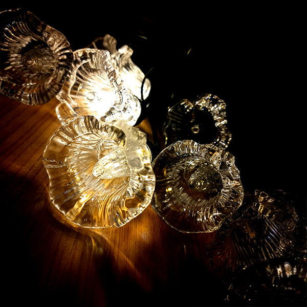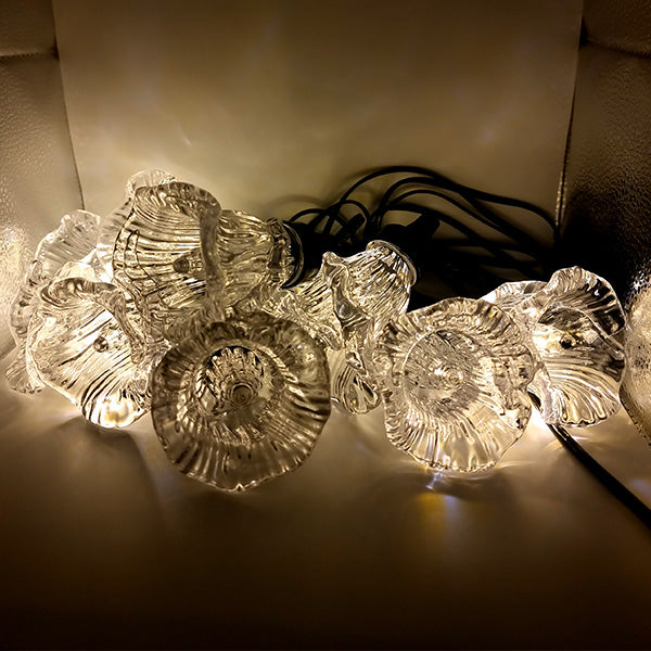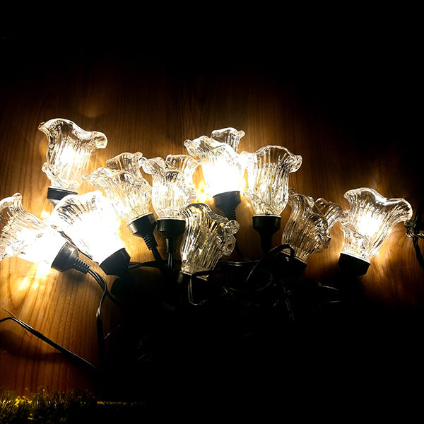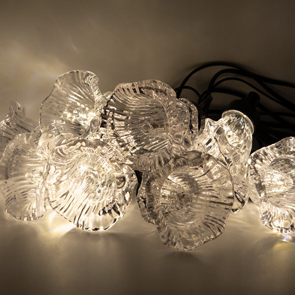- Design elegant: Fiecare lumină are forma unei flori transparente, adăugând o notă rafinată și stilizată decorului.